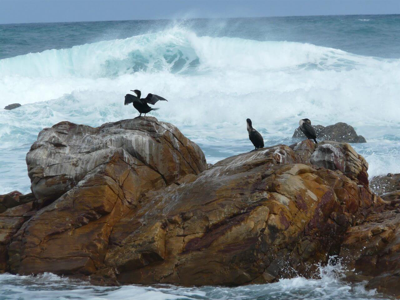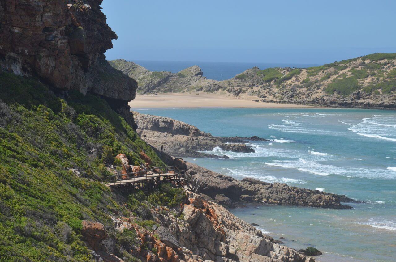 Wir verlassen unsere Unterkunft in Mossel Bay und fahren entlang der Garden Route in der Hoffnung, dass wir trocken durch kommen……mal nieselt es, mal ist es nur bewölkt und manchmal regnet es heftig. Kurze Zwischenstopps machen wir in Herolds Bay und Victoria Bay. Echte Geheimtipps und wunderschöne kleine Orte, die im Sonnenschein natürlich noch mal so schön aussehen würden.