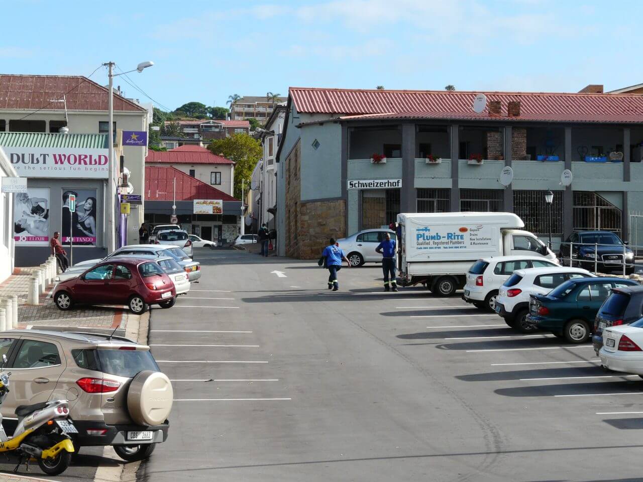 Dann ist aber unser VW Polo schnell bepackt und auf geht’s nach Summerset West. Dort decken wir uns in einem großen Einkaufszentrum mit Lebensmitteln für die nächsten Tage ein. Ab hier wollen wir nun gemütlich entlang der Küstenstraße nach Hermanus fahren. Kurvenreich mit toller Aussicht rollen wir im Linksverkehr entlang des Atlantiks . Bis es plötzlich passiert: ein entgegenkommender Kleintransporter schneidet uns, so dass wir nach links ausweichen müssen und der linke Vorderreifen dran glauben muss. Vorsichtig retten wir uns bis zur nächsten Parkbucht, wo wir das ganze Dilemma genauer unter die Lupe nehmen. Nach mühsamen Telefonaten mit der Autovermietung in Kapstadt und wenig bis gar keiner Aussicht auf Hilfe, entscheidet sich Ludger den Ersatzreifen aufzuziehen. Während wir mühsam den Wagenheber betätigen, hält ein Pickup und eine tatkräftige Südafrikanerin unterstützt uns so lange, bis der Reifen gewechselt ist und wir die restlichen 60 km nach Hermanus zurücklegen können. Super nett! Dann kommen wir im Dunkeln an und verbringen die erste Nacht im Anchors Rest ohne vie.l vom Ort gesehen zu haben.