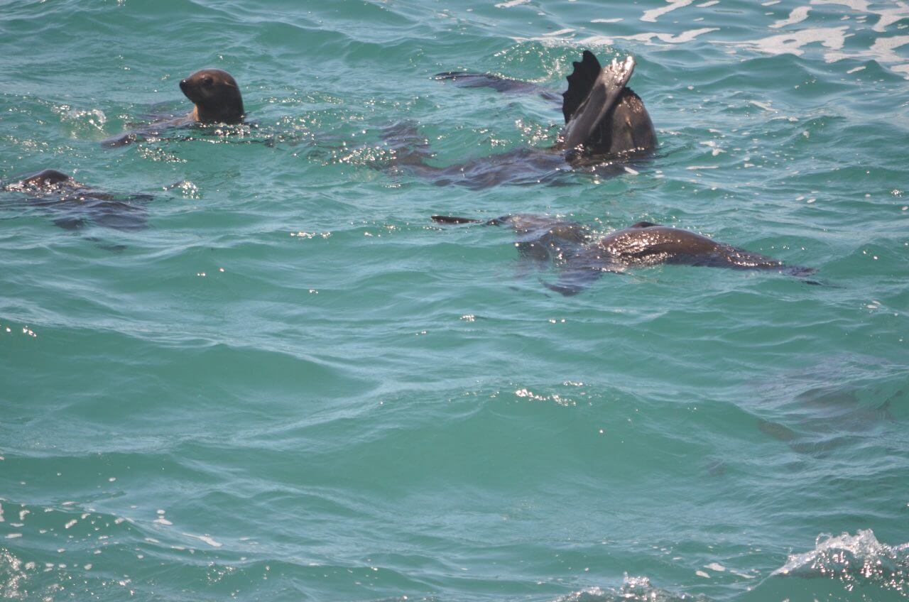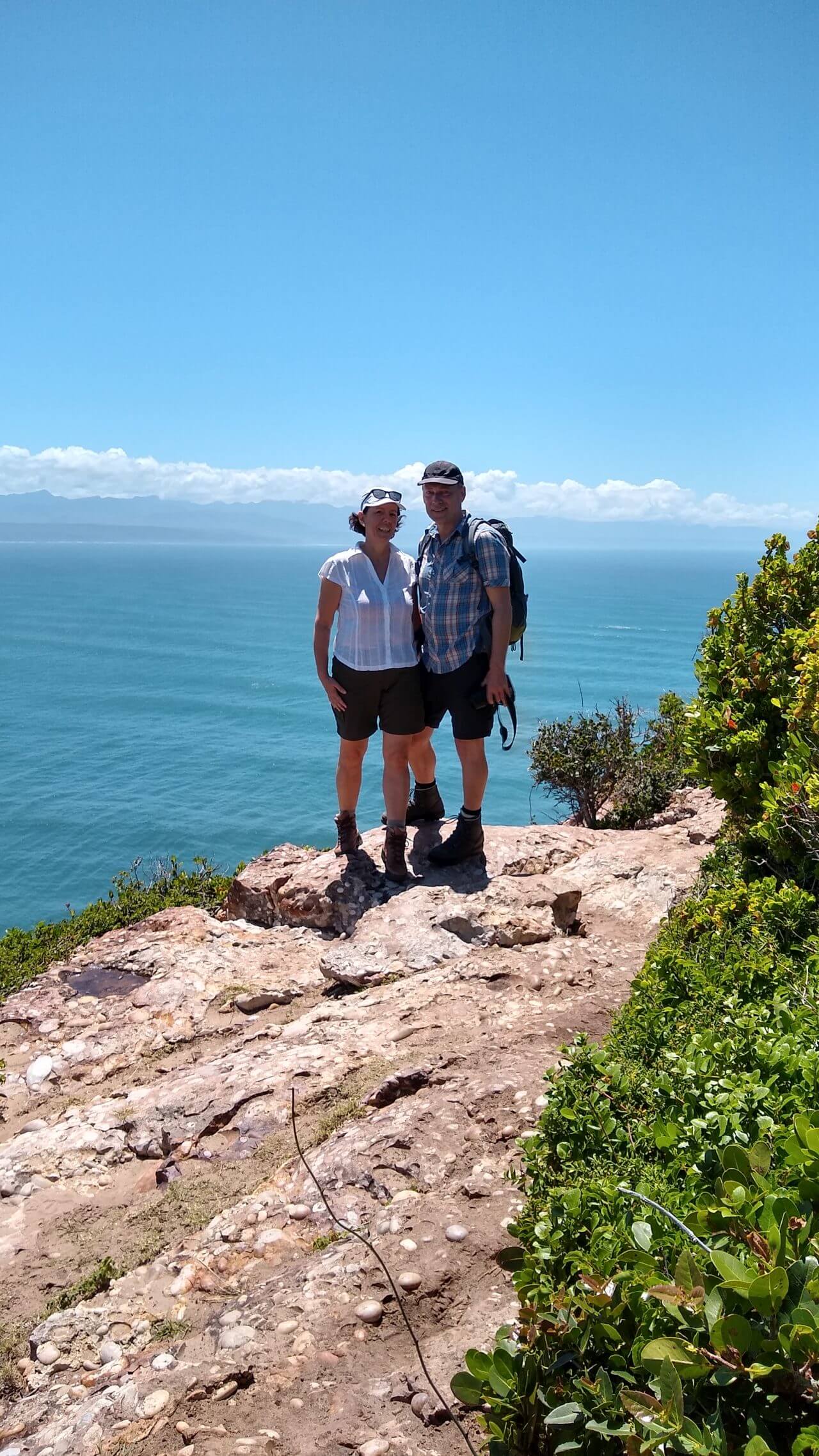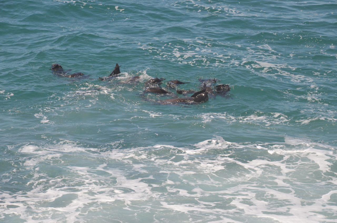 Heute Morgen erleben wir Plettenberg Gott sei Dank von seiner sonnigen Seite und brechen kurz nach dem Frühstück zu einer fünfstündigen Wanderung zum Robberg Nature Reserve auf. Diese Halbinsel liegt etwas südlich von Plettenberg und ragt wie ein langer Zeigefinger etwa 3,5 km in den indischen Ozean hinein und ist durch verschiedene Wanderwege erschlossen. Direkt am Parkplatz müssen wir uns anmelden, mit Autokennzeichen, Namen und Handynummer registrieren und dann beginnen wir den knapp 10 km langen Rundwanderweg. Los geht es über schmale Pfade, steile und steinige Wege, Geröll und Felsen. Aber immer mit atemberaubender Aussicht. Unterwegs sehen wir die Robbenkolonien, es ziehen Delfine vorbei und nach jeder Kurve gibt es wieder neue atemberaubende Ausblicke. Alles in allem eine Wanderung in traumhafter Kulisse, sicherlich KEIN Spaziergang, aber ein echtes Erlebnis.