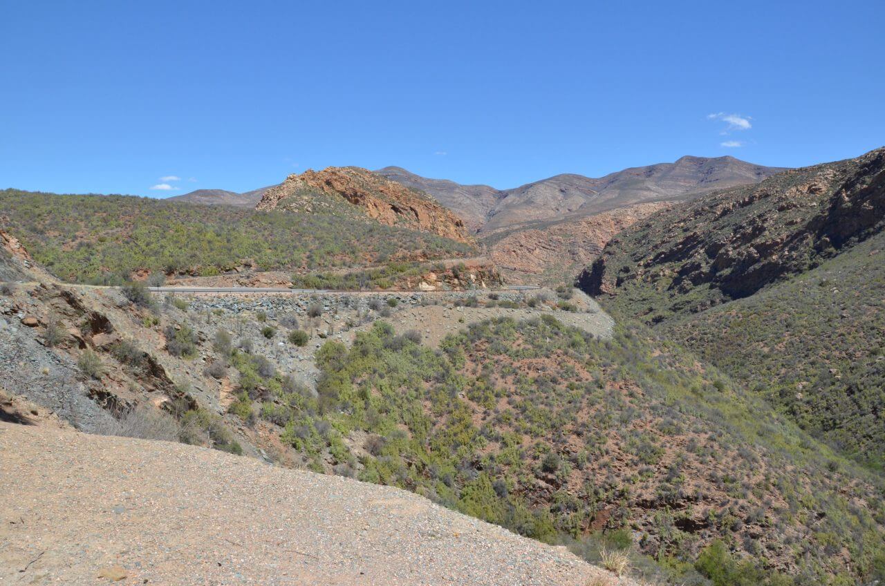 Was den Amerikanern die Route 66 ist, ist in Afrika die Route 62, und über diese fahren wir heute zurück ins Landesinnere. Sie ist landschaftlich eingebettet in majestätische Berge, malerische Pässe, hoch aufragende Felsen. Immer geht es entlang der Kleinen Karoo. Sie gilt als eine der schönsten Reiserouten durch Südafrika. Ich für meinen Teil muss jedoch gestehen, dass ich die Landschaft zwischendurch schon recht eintönig empfinde und immer wieder erstaunt bin, wie plötzlich aus dem Nichts wieder eine Stadt auftaucht.