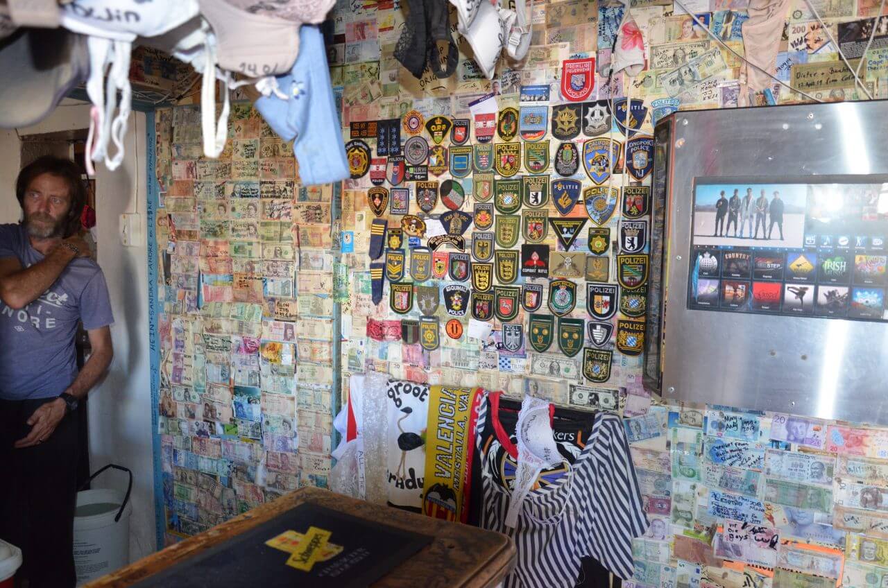 Visitenkarten oder Unterschriften, jeder Gast versucht irgendetwas von sich hier zu lassen. Die Geschichte dahinter, so erfahren wir, ist folgende: Ronny wollte in dieser abgelegenen Gegend einen Farmshop eröffnen. Seine Kumpel haben ihm einen Streich gespielt und neben “Ronnies Shop” einfach noch das Wort “Sex” gepinselt und es ist bist heute dabei geblieben und hat sich zu einer Erfolgsgeschichte entwickelt.