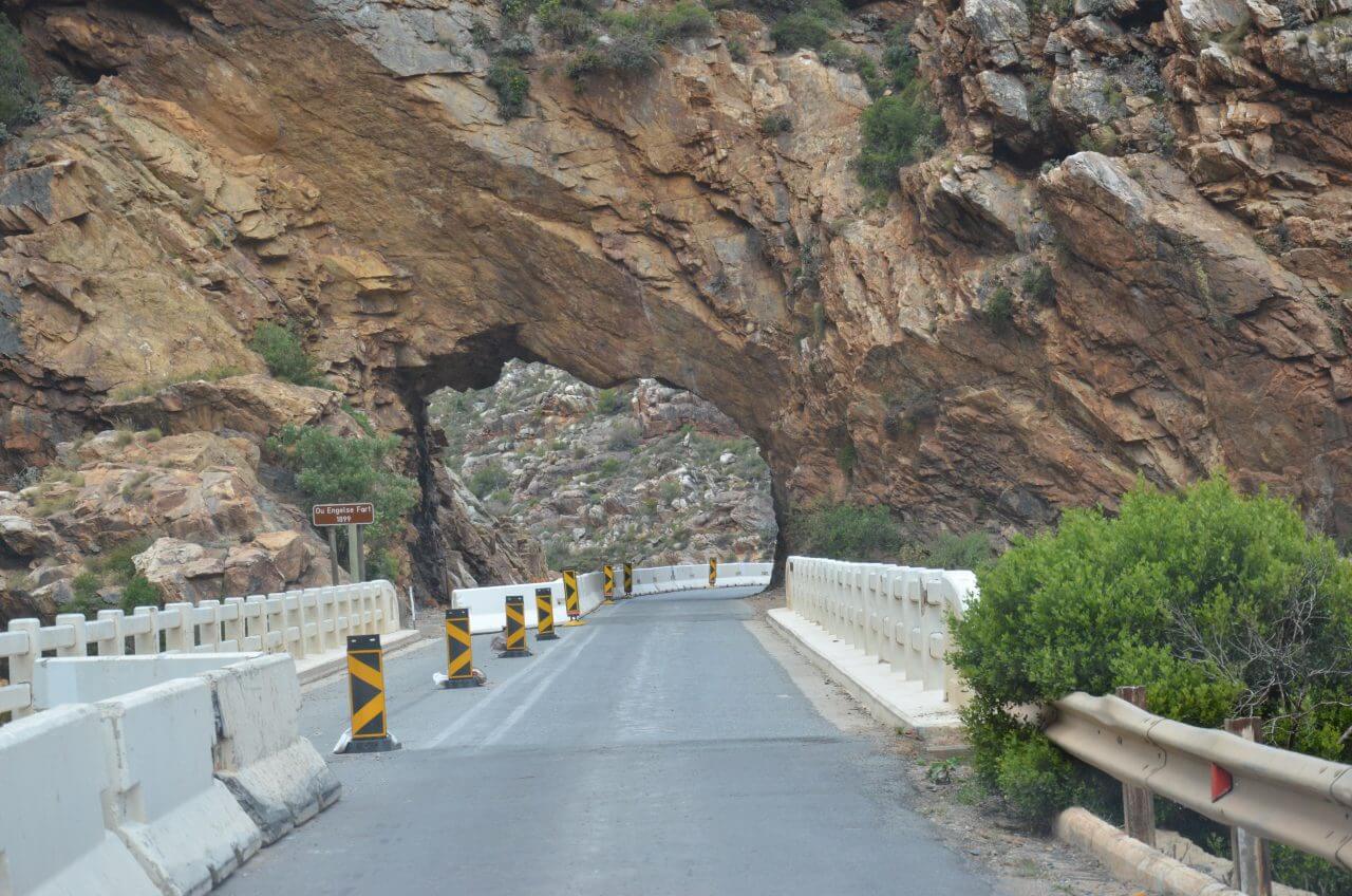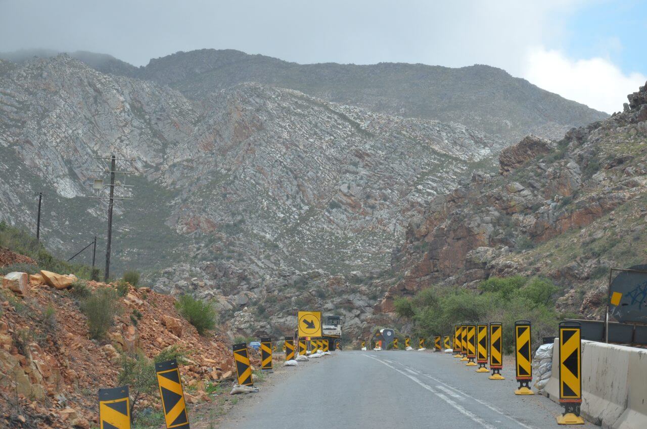 Inzwischen ist es Nachmittag geworden und wir fahren zu unserem ca 60 km entfernten Ziel Montagu. Der Anfahrtsweg führt uns durch den spektakulären Cogmann’s Kloof, eine nur 5 km kurz Strecke durch steile Felswände und wie kann es sein…..Mal wieder durch Baustellen. 😄