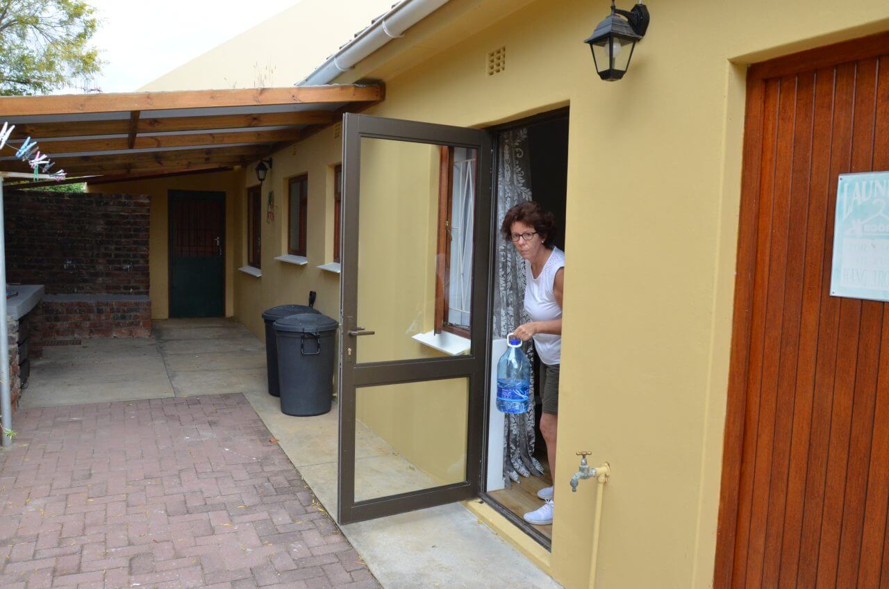 Wir übernachten heute in der Kingna Road bei Gerda Behm in Alida’s Place 3, die ihre Unterkunft (Schlafzimmer und Küche) günstig bei Airbnb abietet. Wahrscheinlich günstig, weil wir feststellen, dass die Wohnung nicht einmal über Tisch und Stühle verfügt.