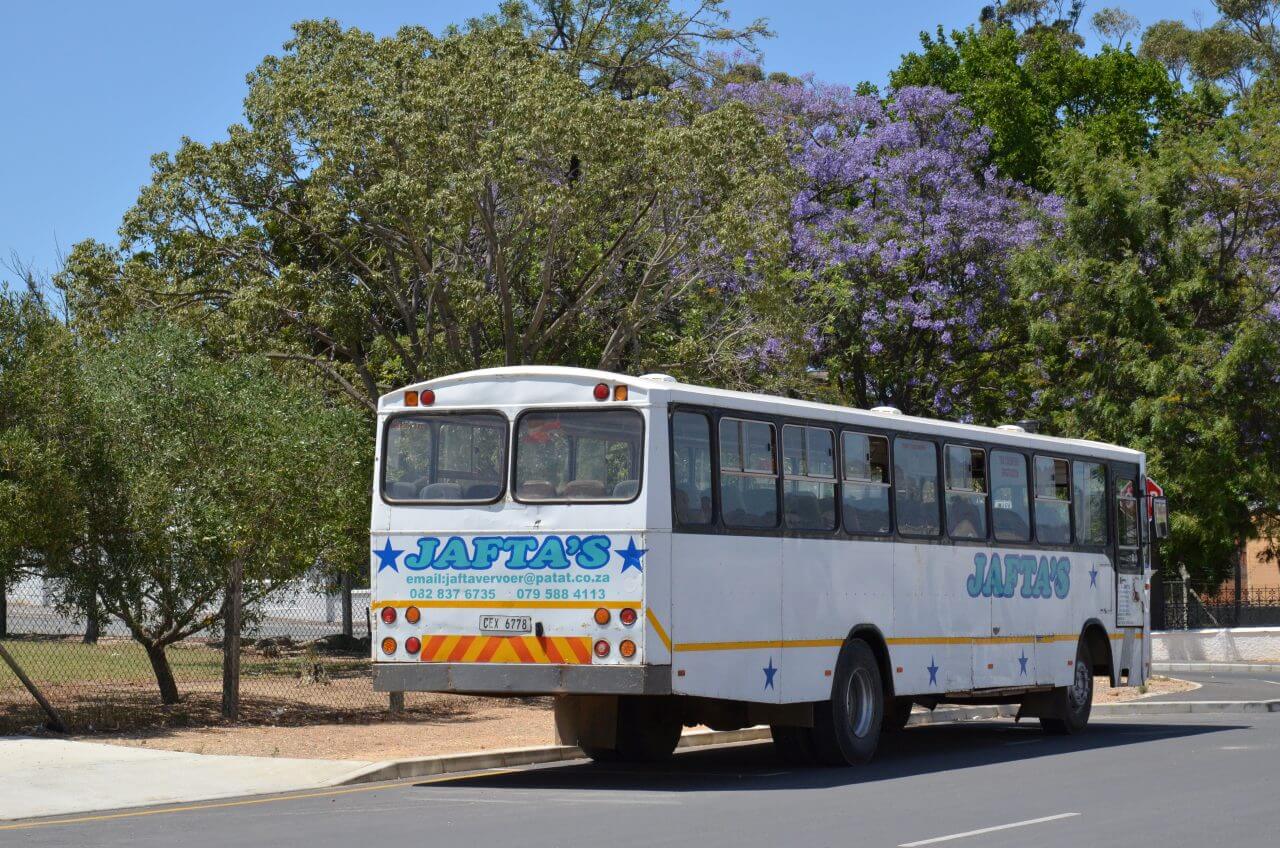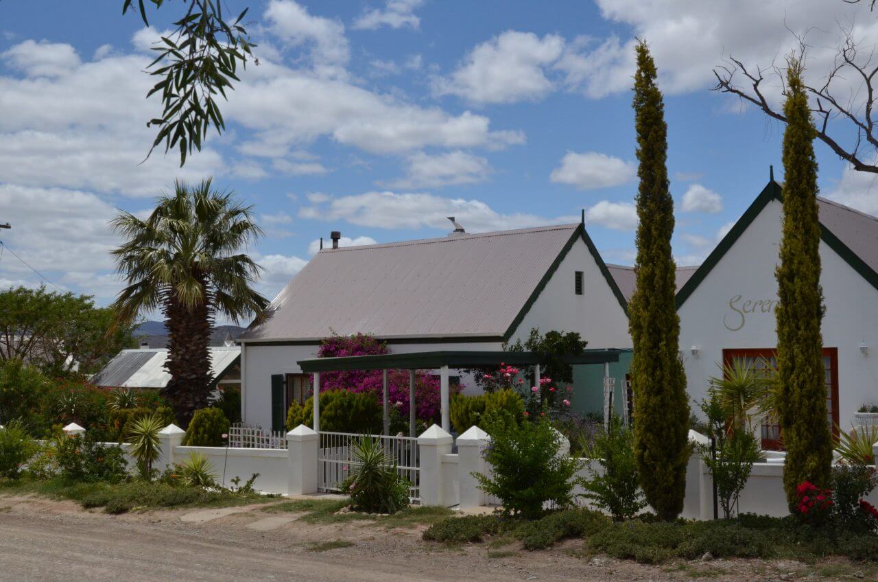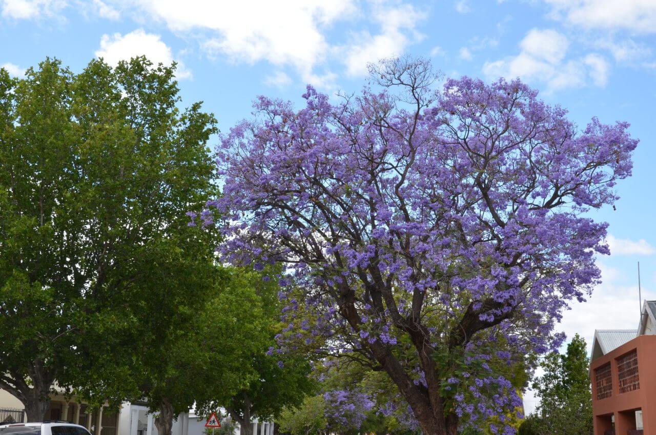 In Robertson, einer der berühmten Weinstädte Südafrikas, machen wir einen ersten Stop. Zu den besten hiesigen Weinen zählen unter anderem Chenin Blanc, die hier oft preiswerter als in der Kapstadtregion sein sollen. Hier, wie in vielen anderen Orten auch, blühen momentan die violett-hellblauen Jacarandabäume und säumen viele Straßen. Zusammen mit den weißen Häusern bildet das ein einmaliges Ensemble.