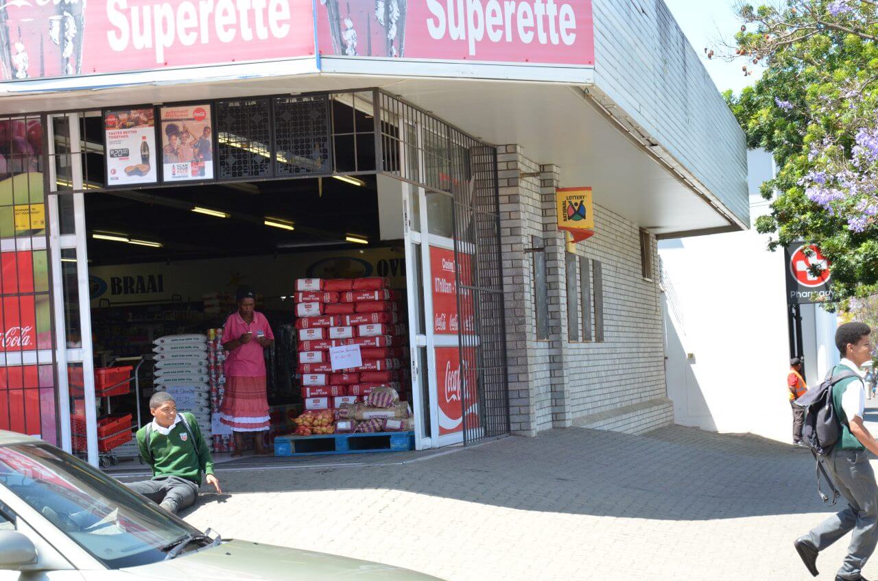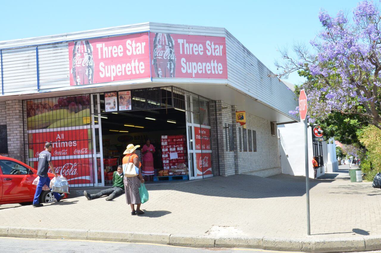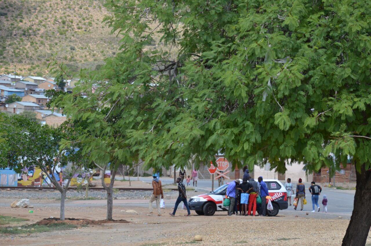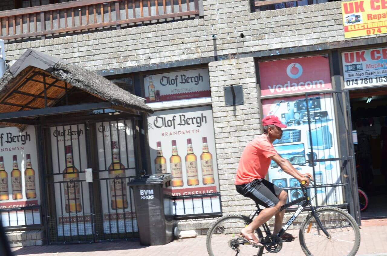 Am Randgebiet von Robertson sehen wir die farbige Bevölkerung, wie sie ihren Alltagsgeschäften nachgeht, wo sie leben und einkaufen.