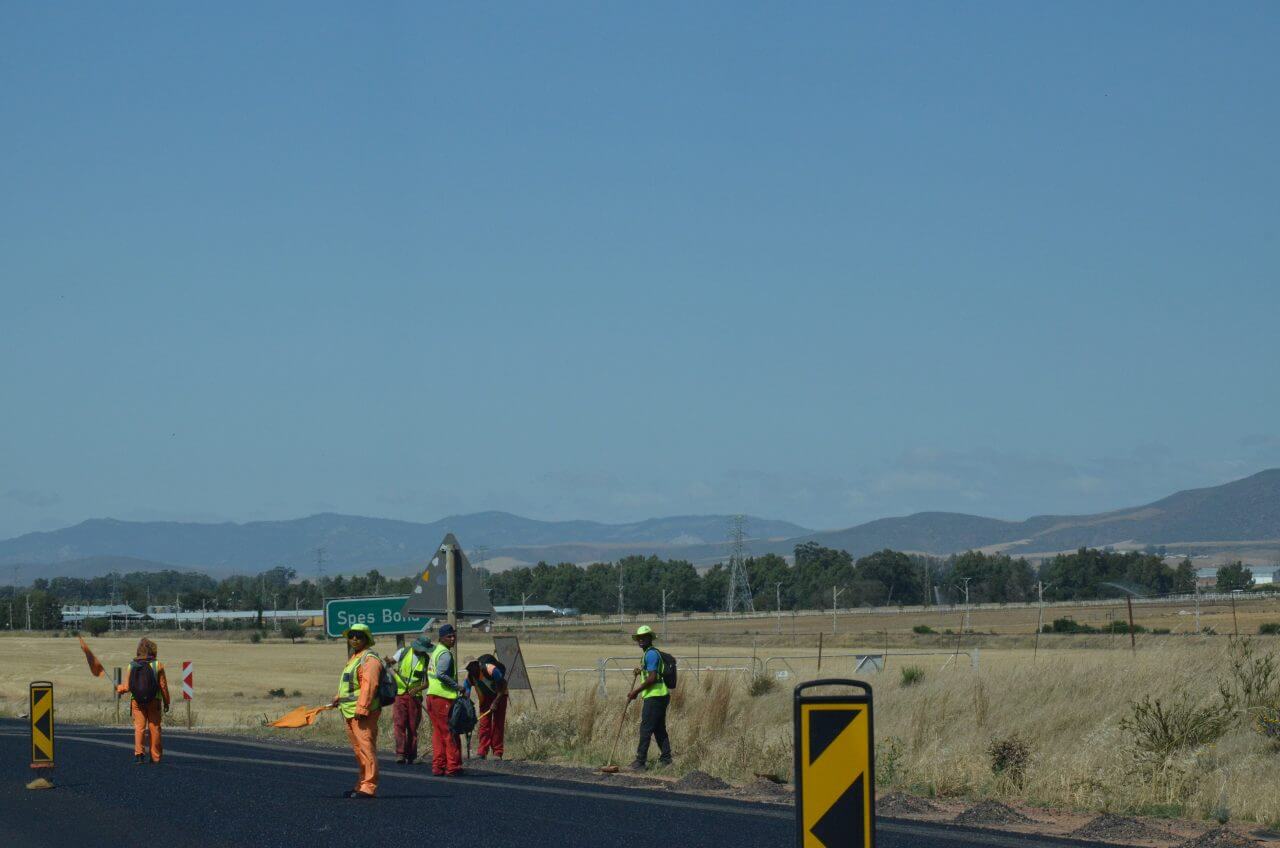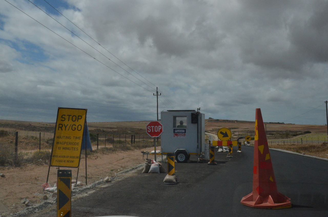Auch hier in Clanwilliam fällt uns der Abschied mal wieder schwer. So abgeschieden, wie wir auch gewohnt haben, hatte diese Einfachheit und Ruhe doch ganz viel für sich. Aber ab jetzt kehren wir der Bergwelt den Rücken und fahren zur Atlantikküste, die nur ca 60 km entfernt ist. Irgendwie gar nicht zu glauben, dass sich in so kurzer Entfernung Flora und Fauna derartig ändern. Natürlich haben wir auf der gesamten Strecke heute mal wieder viel mit Baustellen zu tun.