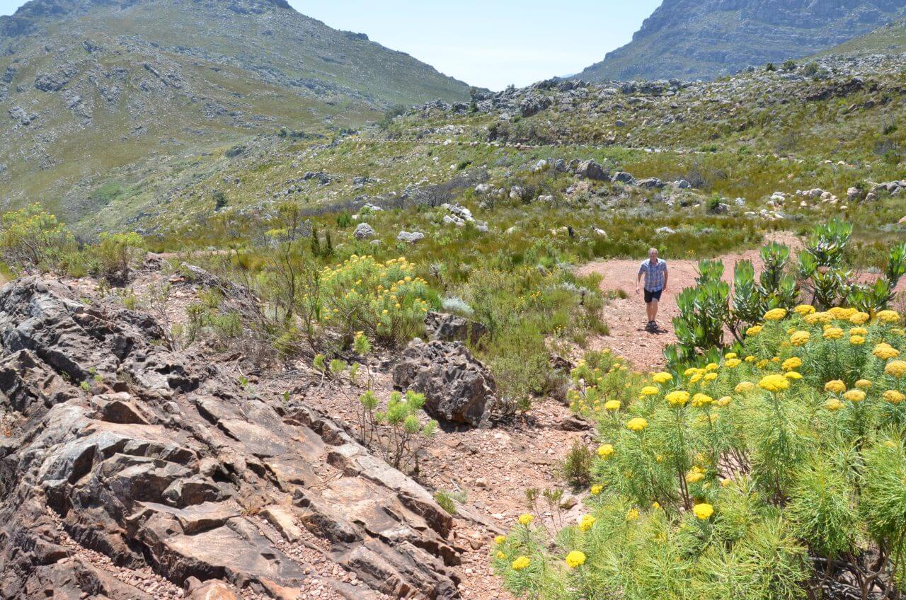 Der Bain’s Kloof Pass gilt als als wunderschöne Autostrecke. Drei verschiedene Wandermöglichkeiten soll es dort oben geben. Davon wollen wir eine heute in Angriff nehmen. Unterwegs, w ie kann es anders sein, geraten wir mal in eine der vielen Baustellen und warten wieder 20 Minuten bis es weiter geht.