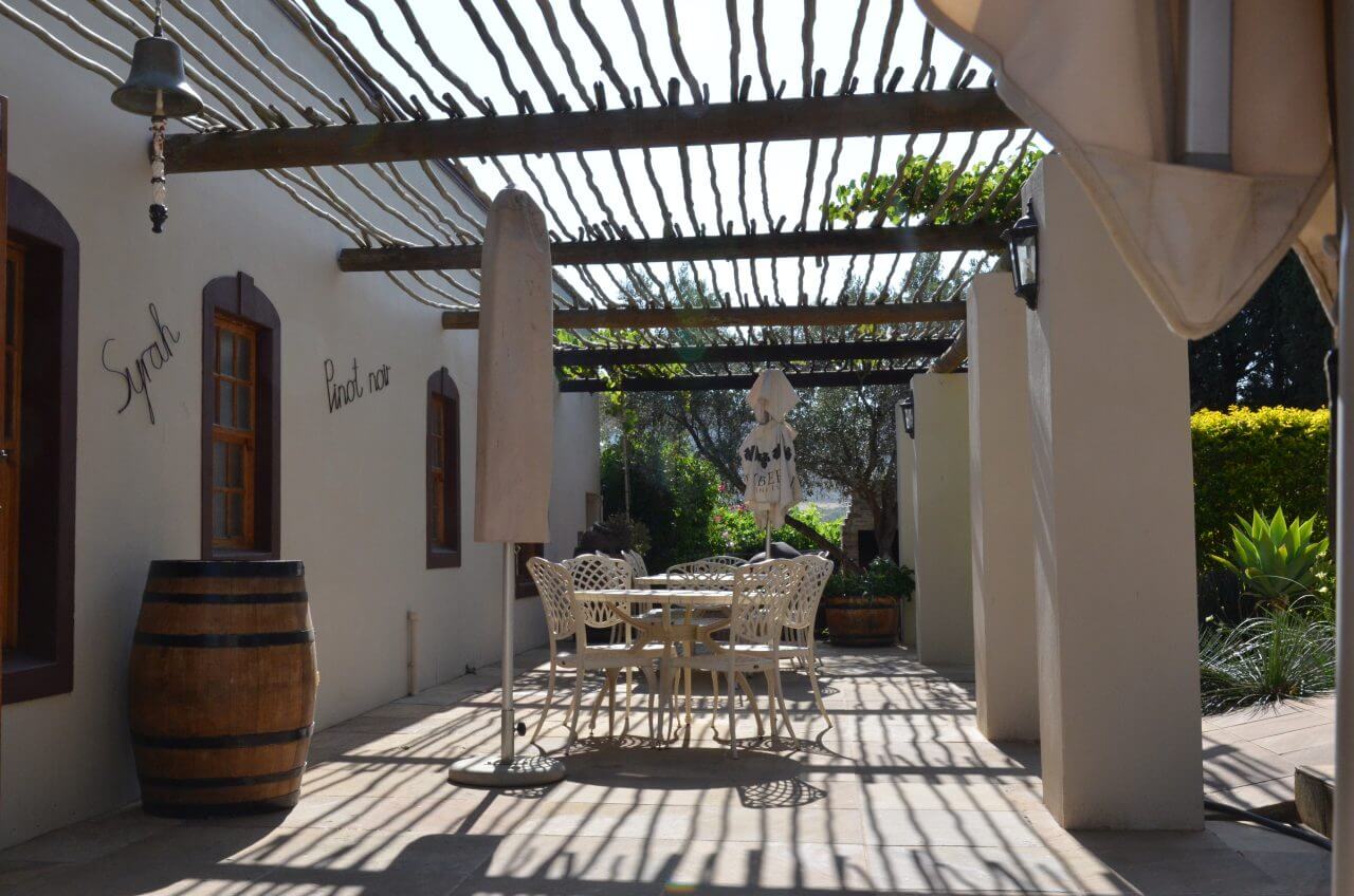 Heute, an unserem Urlaubstag, genießen wir wieder ein ausgiebiges Frühstück in der Sonne, um dann am Vormittag in den Ort Tulbagh hineinzufahren. Tulbagh ist ein kleiner Ort hier in diesem weiten Talbecken, umgeben von den Witzenbergen. Hier befinden sich einige sehr gute Weinfarmen, die oftmals auch “handcraftet” also wirklich handgemachten Wein anbieten. Zunächst aber schlendern wir durch die Straßen, bewundern die wundervoll restaurierten Häuser in der Church Street, kaufen uns in der Tourist Information ein Permit für die Wanderung am Nachmittag und beim SPAR Markt unsere Trinkwasserration für die nächste zwei Tage. Wir sind überrascht, wie schöne Lokale, Restaurants und Gasthäuser sich hinter den Fassaden verbergen.