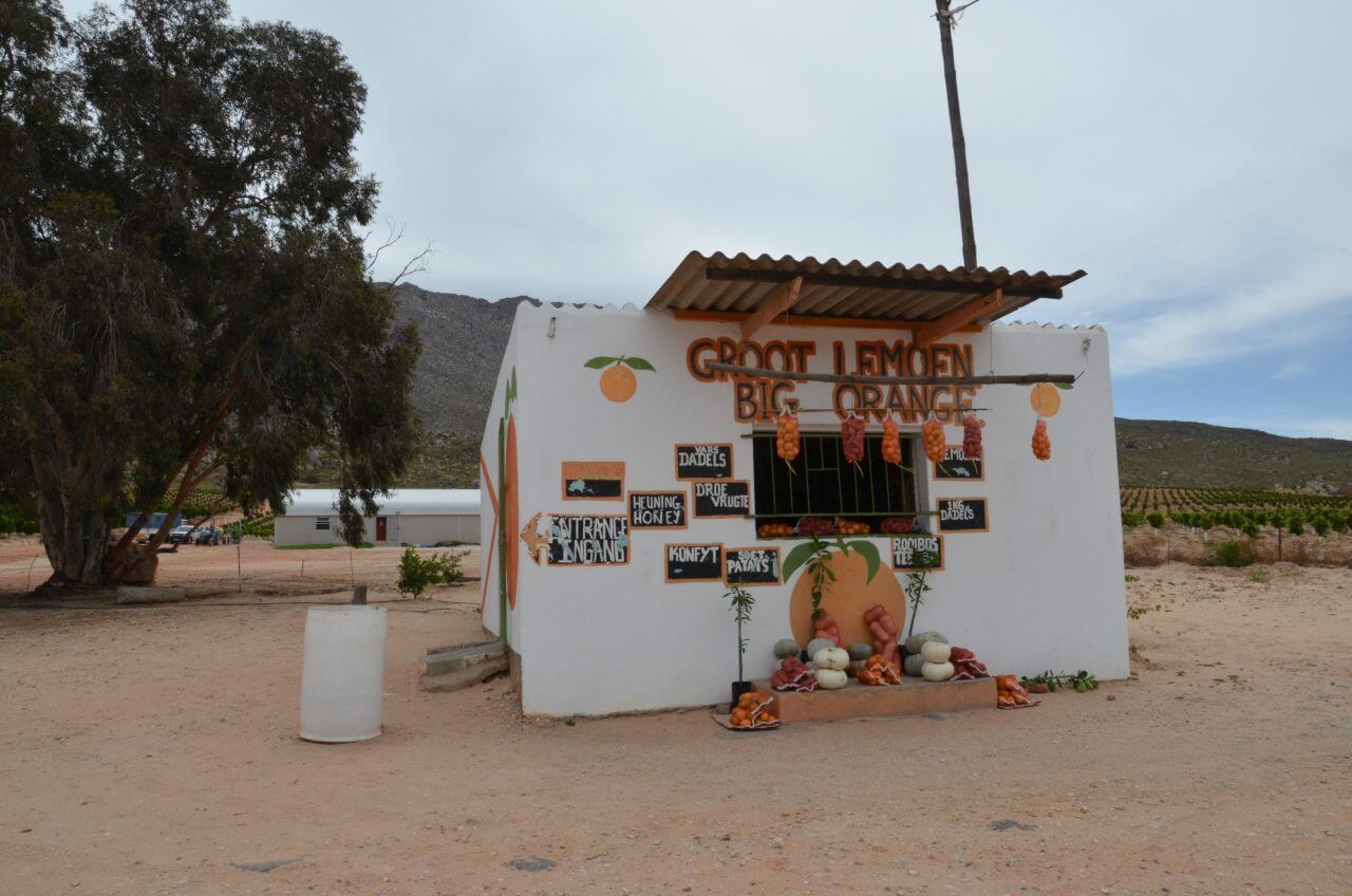 Nachdem uns auch 20 km abendteuerliche Gravelroad nicht erspart geblieben sind, erreichen wir Citrusdal, inmitten des Olifants River Valley.