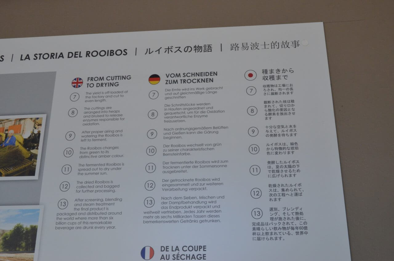 In Clanwilliam befindet sich Südafrikas bedeutendster Verarbeitungsbetrieb für Rooibustee. Bereits gestern konnten wir im Ort verschiedene Sorten testen und natürlich auch kaufen. Heute auf der Rückfahrt fahren wir unter anderem an den Feldern mit den Rooibospflanzen vorbei, die erst im Januar per Handarbeit geerntet werden. Dann stehen diese Pflanzen bereits seid 18 Monaten auf dem Feld und werden zu einem köstlichen und gesundem Getränk verarbeitet.