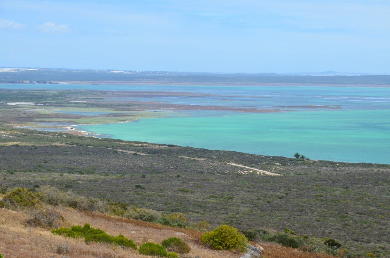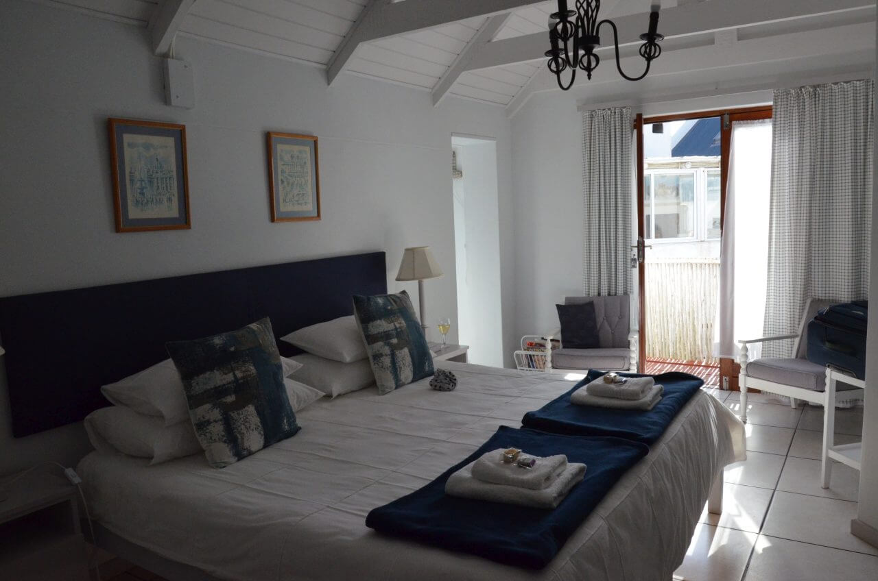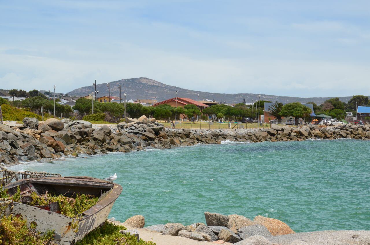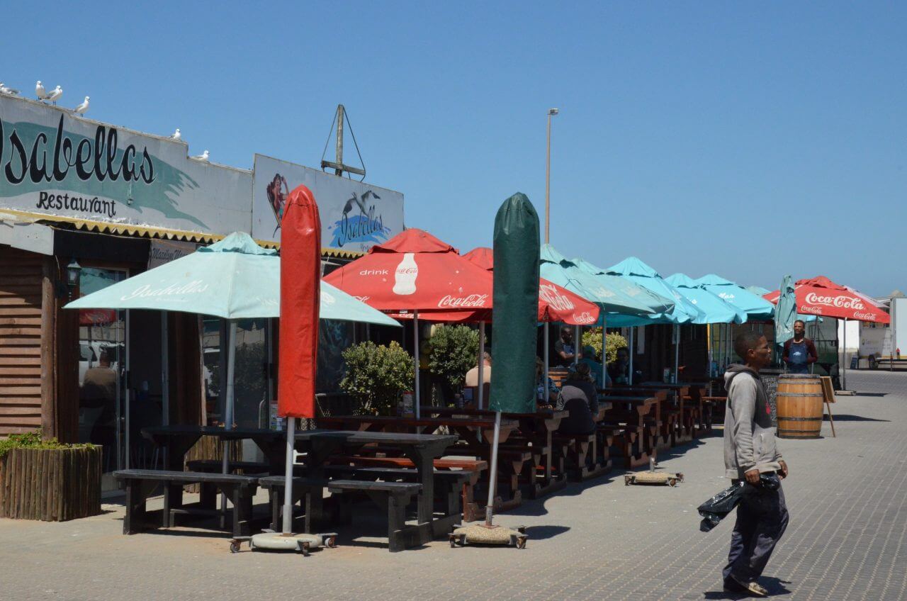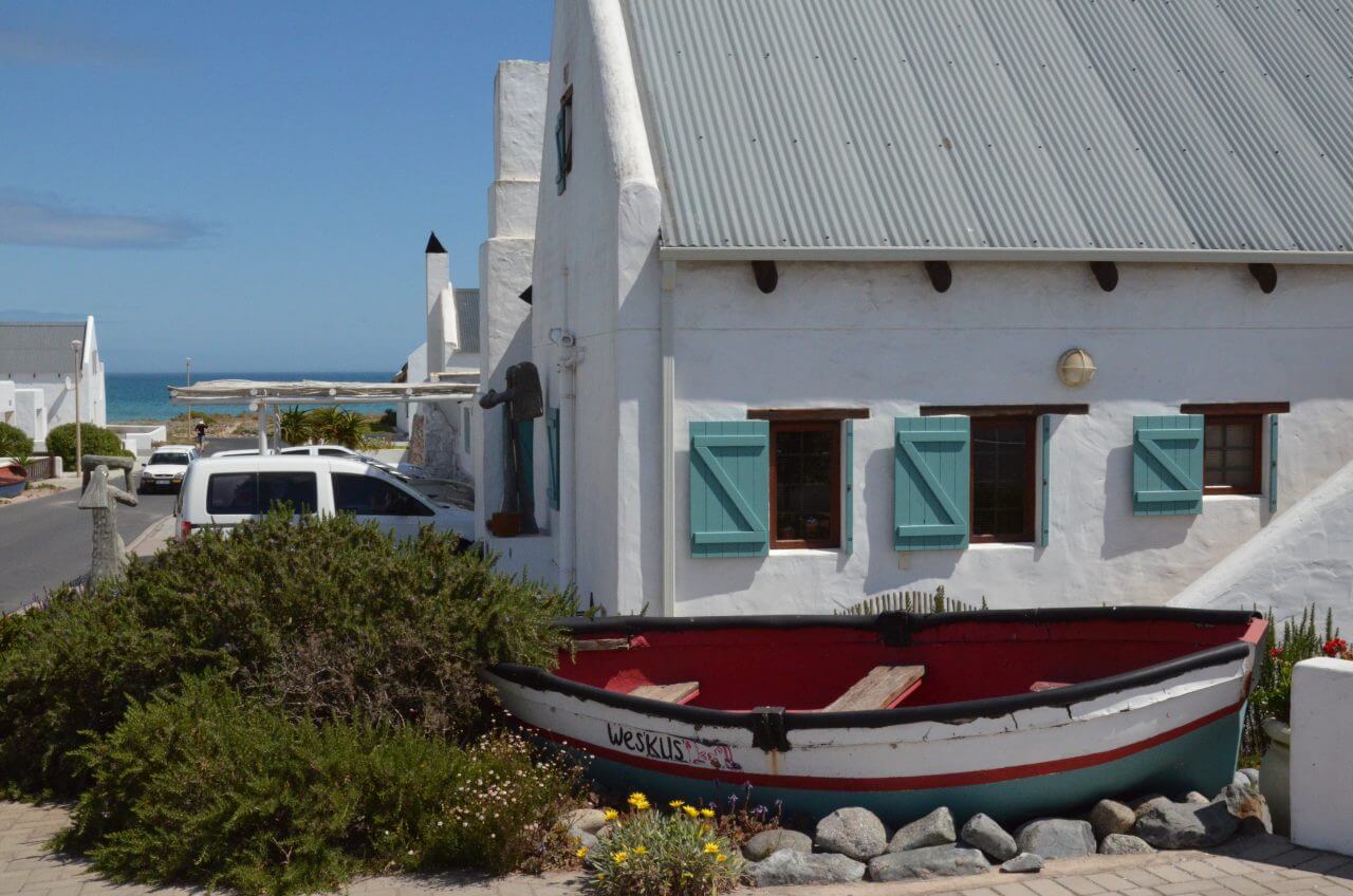 Gegen 16 Uhr kommen wir in Paternoster an unserer Unterkunft Paters Haven an. Wie fast alle Häuser hier in Paternoster ist auch dieses weiß getüncht. Der Gastgeber ist sehr gesprächig und erzählt uns einiges über Land und Leute. Auch , dass am Tag zuvor mehrere Wale in der Bucht zu sehen waren. Vielleicht haben wir ja auch noch Glück. Wir haben eine herrliche Aussicht aus dem Küchenfenster, aber leider nicht vom Balkon. Und so machen wir uns schnell auf ins nahegelegene Restaurant mit Meerblick und genießen unseren frisch gefangenen Fisch of the Day auf einer schönen Terrasse.