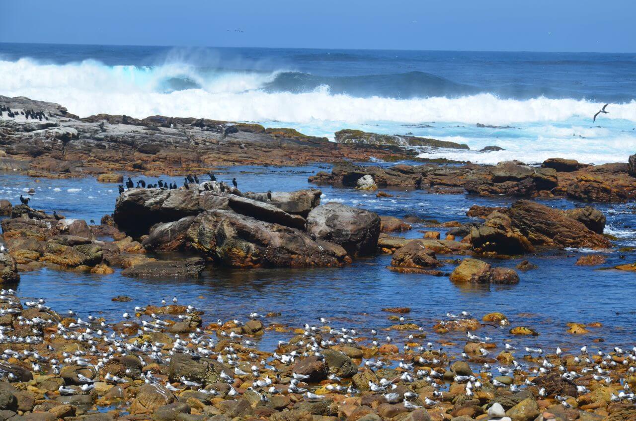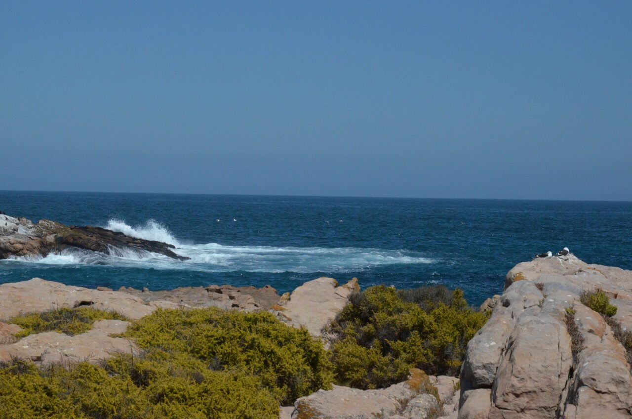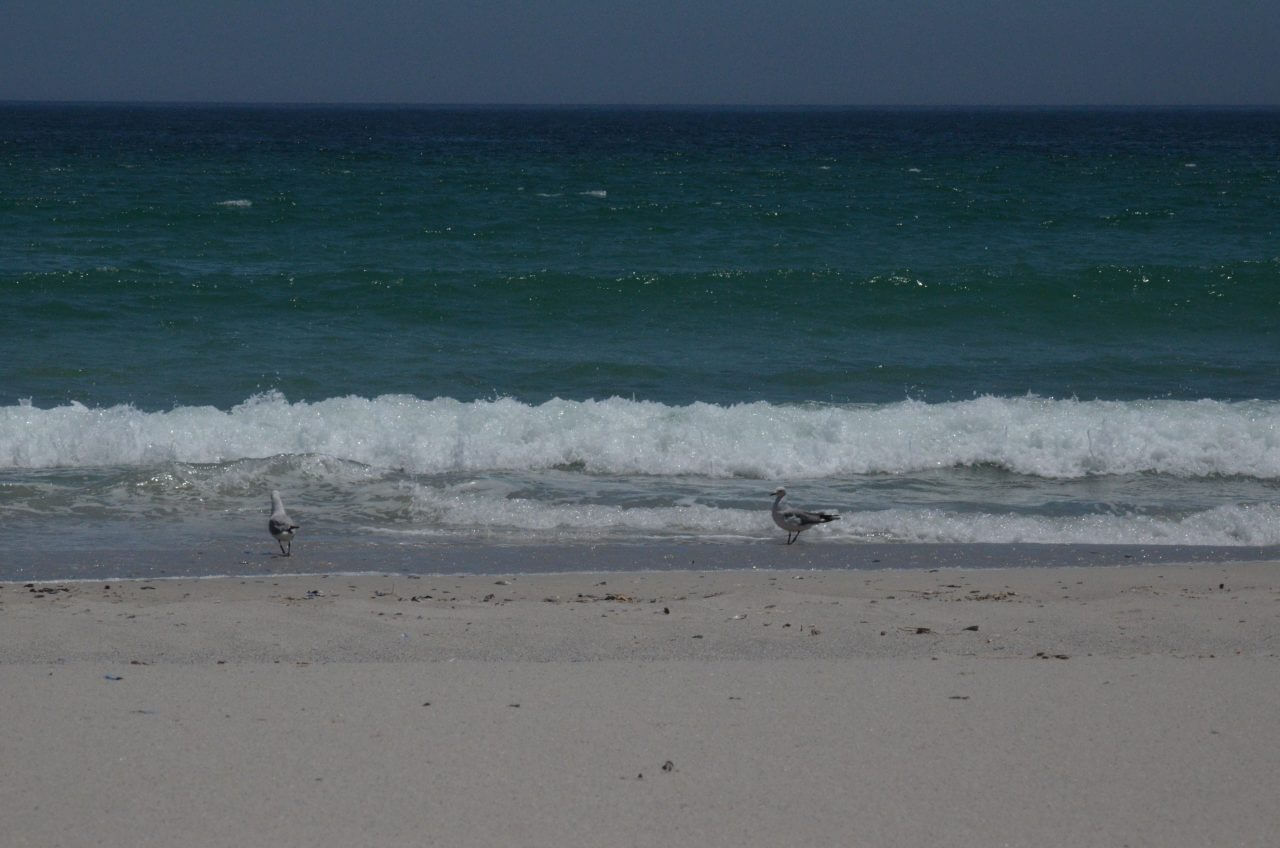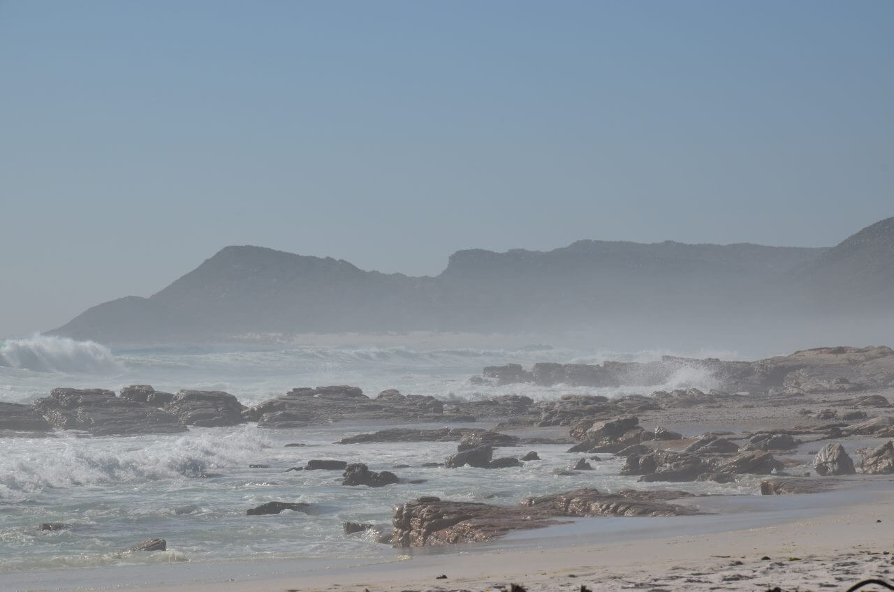 Leider können wir auch heute morgen die Wale nur erahnen. Mit einem Fernglas sind sie zwar auszumachen, aber so richtig wollen sie sich uns nicht zeigen. So packen wir dann unsere Koffer, fahren noch einmal zum Strand um uns dann entlang der Küste nach Kapstadt zu bewegen.