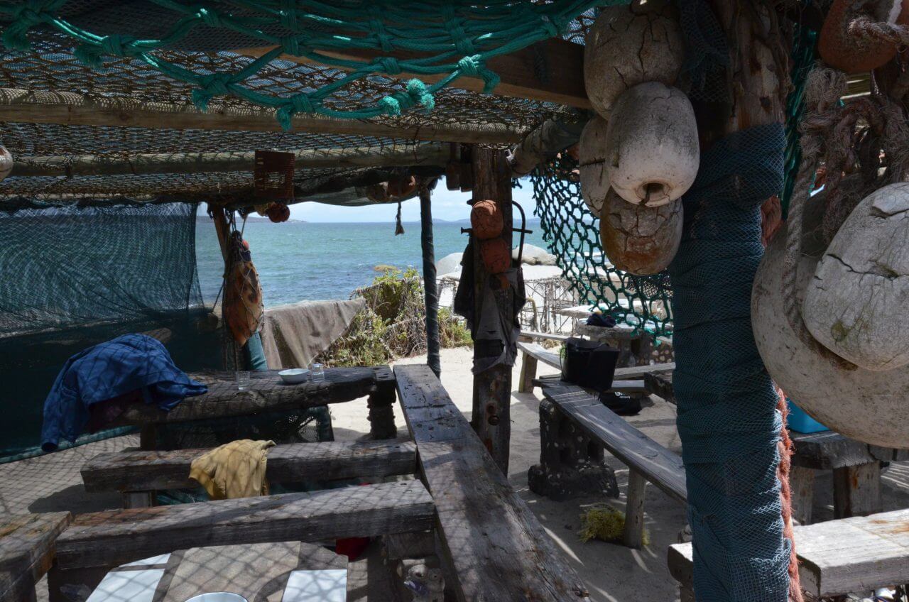 … etwas später in Langebaan einen etwas längeren Spaziergang am Strand zu machen. Hier besuchen wir ein angesagtes Szene Lokal am Strand mit Namen Strandloper. Unglaublich, was hier los ist. Ohne Reservierung können wir hier gar nichts zu essen bekommen. Muscheln kochen in gußeisernen Töpfen auf dem offenen Feuer, Gambas werden auf Holzkohle gegrillt und der Wein wird gleich Flaschenweise ausgeschenkt. Es herrscht eine tolle Atmosphäre, aber wir genießen heute mal nur das Zuschauen.