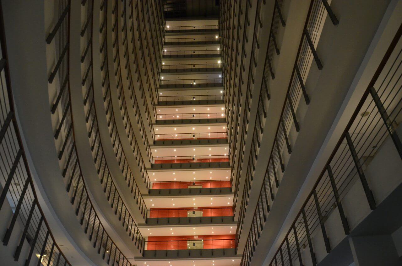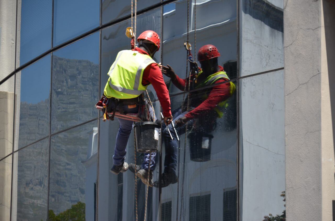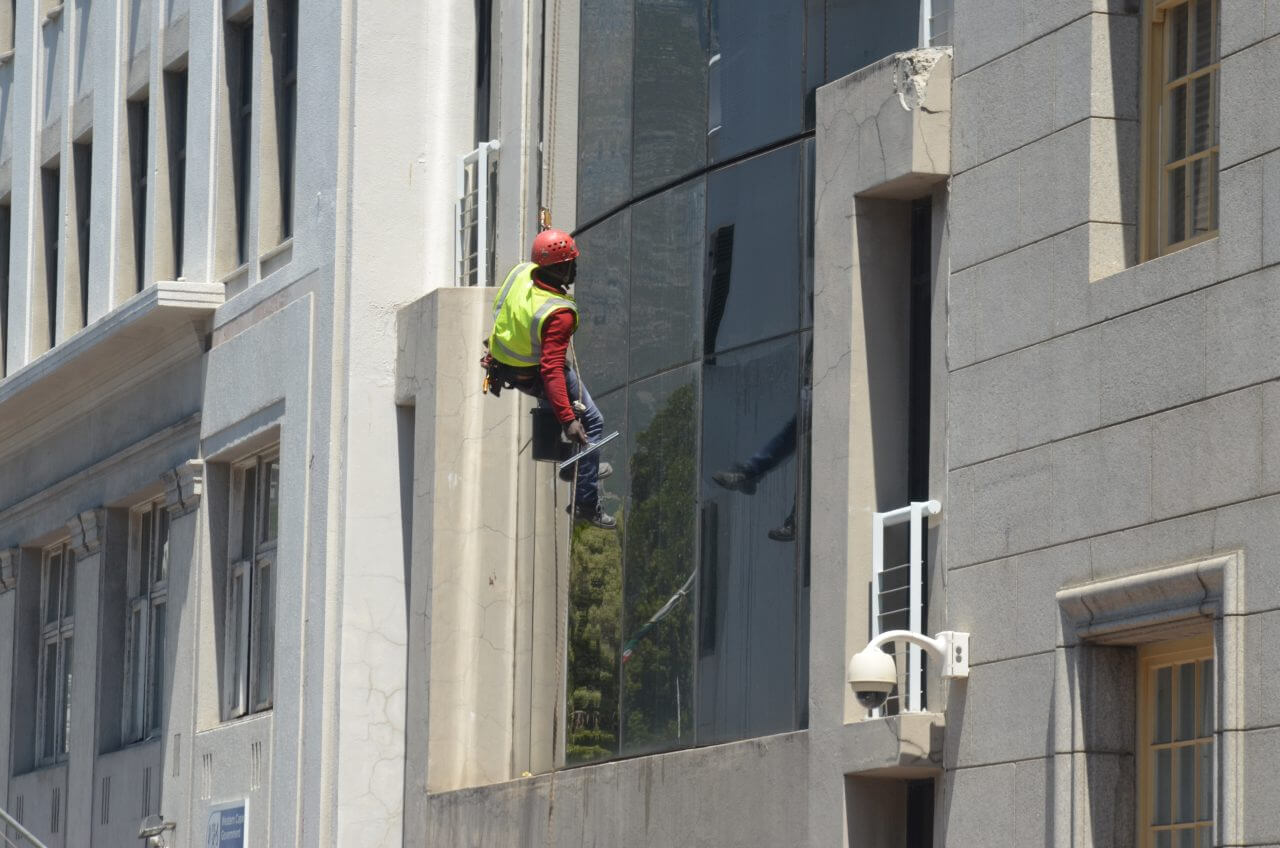 Die Fensterputzaktion an einem der vielen Hochhäuser mutet sehr abenteuerlich an.