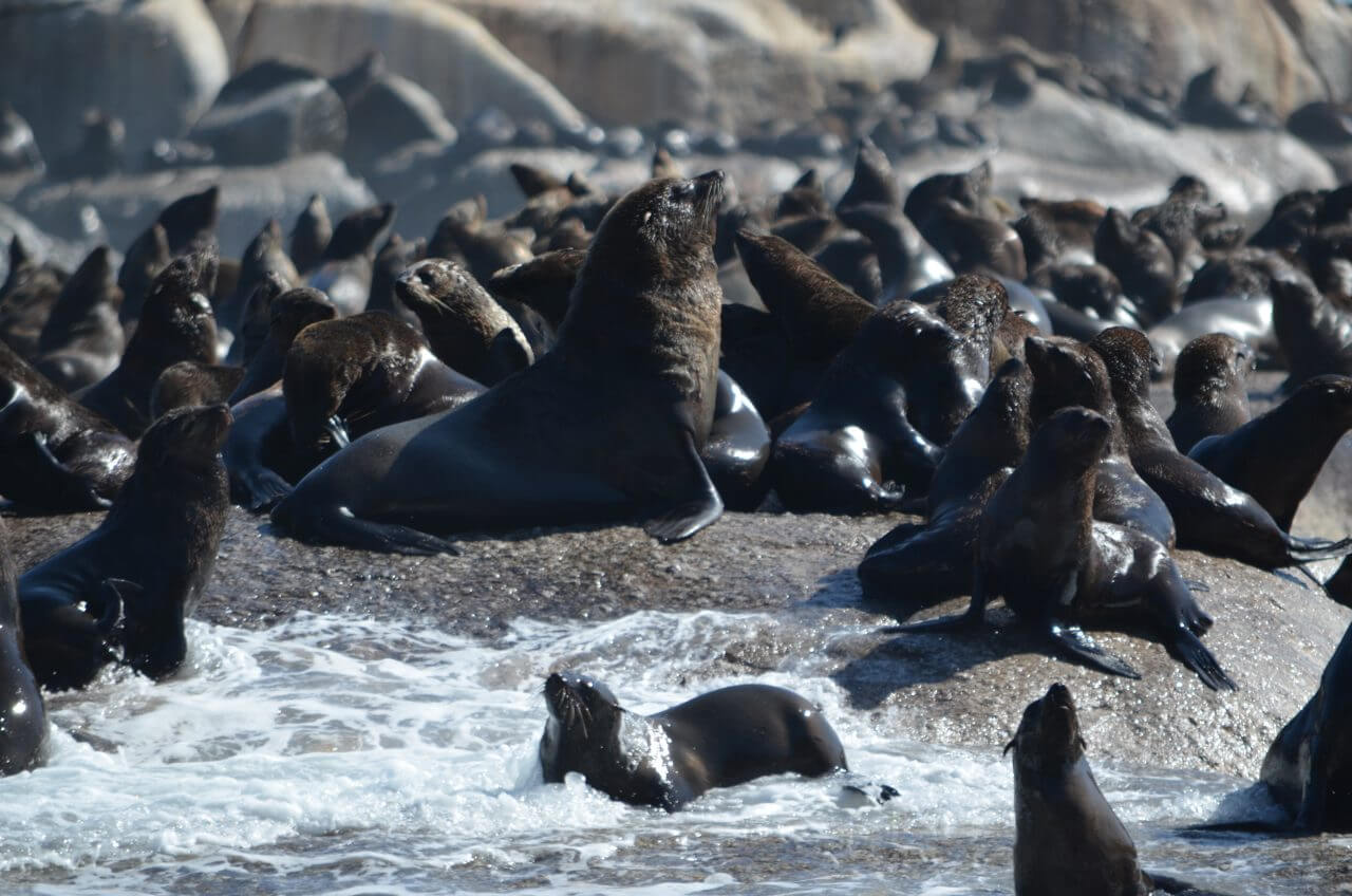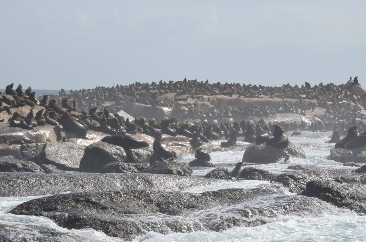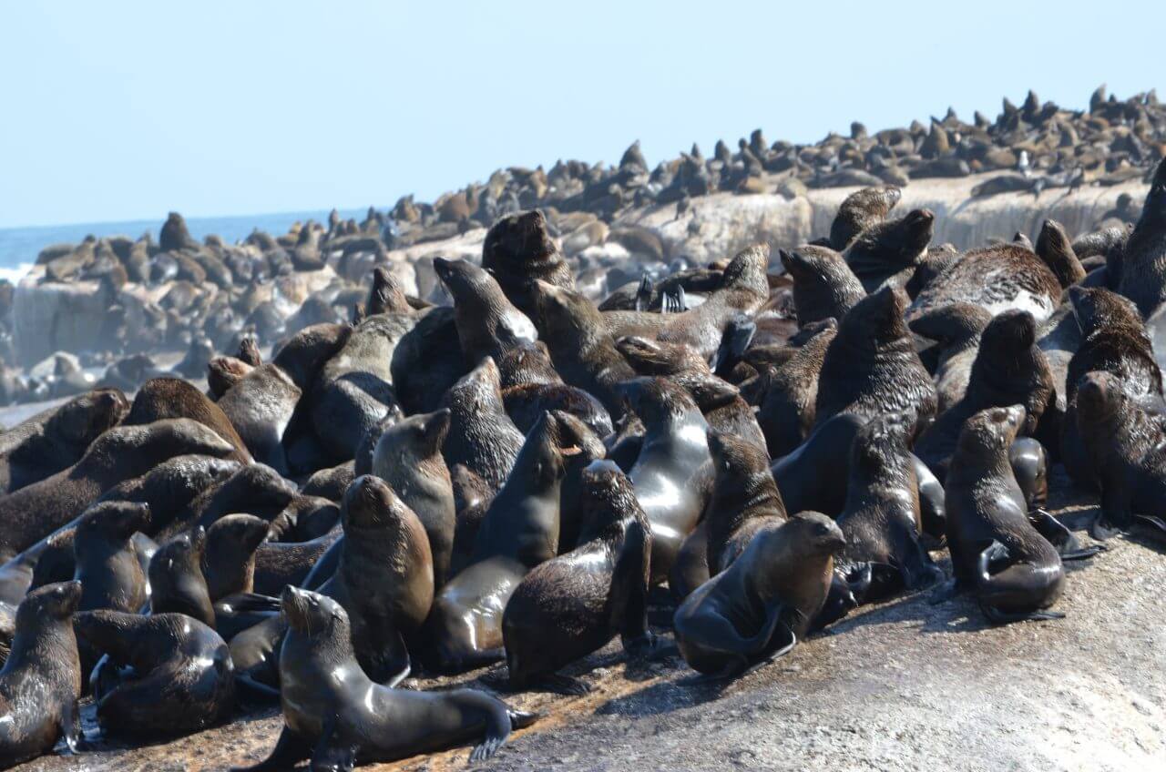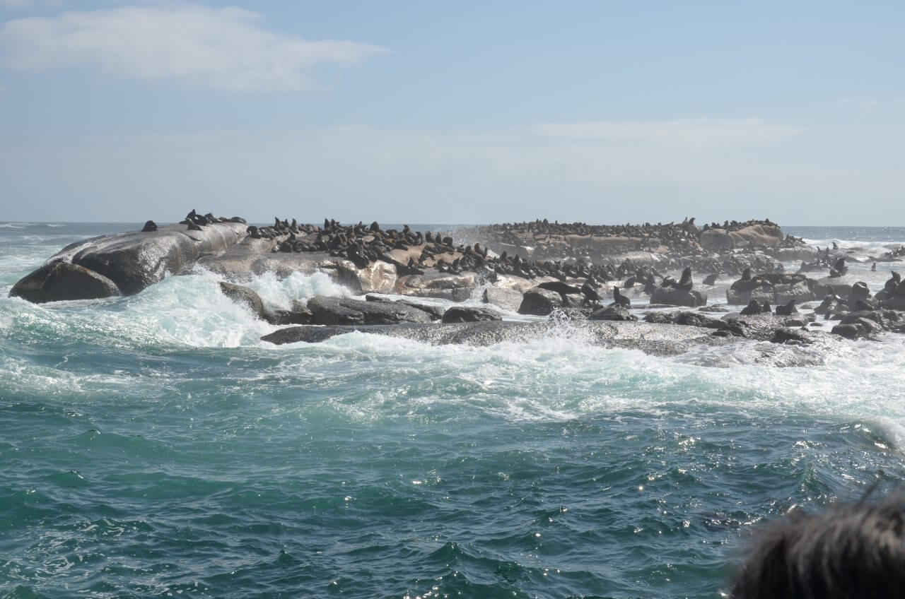 Gleich darauf steigen wir aufs Boot, um die Landschaft auch einmal von der Wasserseite aus zu bestaunen. Vom Hafen geht es hinaus zur Insel Duiker Island, auf der aber lediglich eine kleine Robbenkolonie lebt. Auf dem Atlantik schaukelt es ungemein und ich bin froh, nach einer knappen Stunde wieder an Land zu sein.