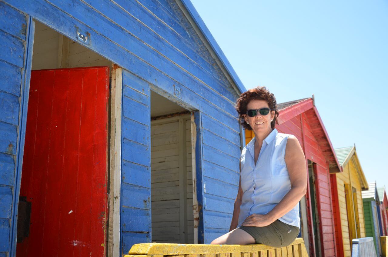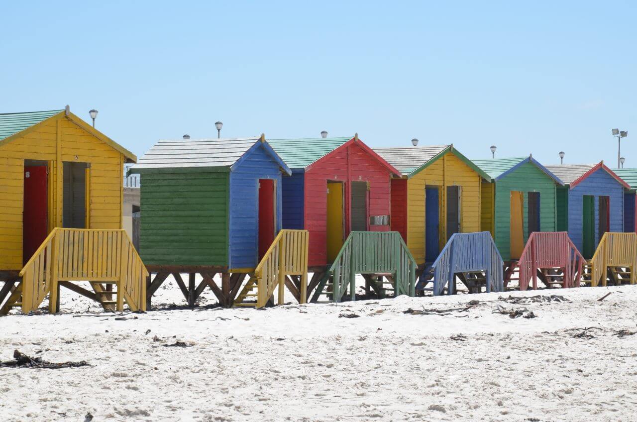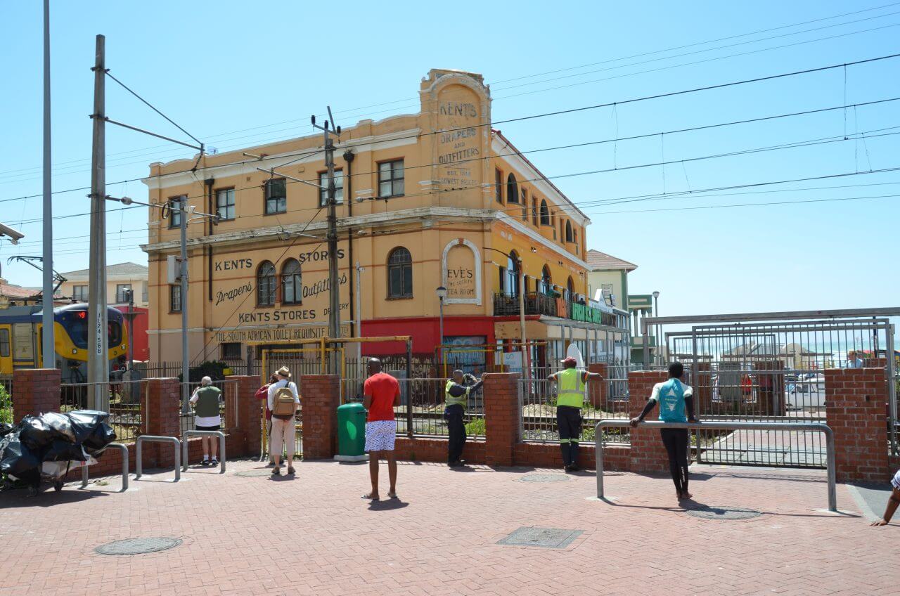 Das Gebäude wurde bereits 1913 erbaut und steht heute unter Denkmalschutz. Bis hierher könnte man auch heute noch problemlos mit dem Zug von Kapstadt anreisen. Gleich dahinter liegt der lange, weiße Strand mit seinen bunten Badehäuschen, die als Umkleidekabinen dienen.