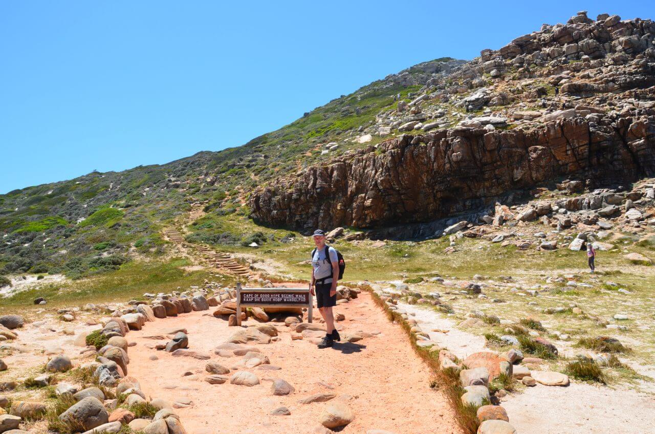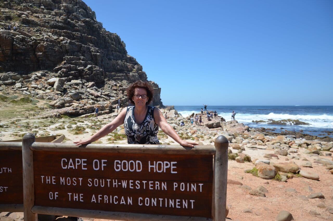Es ist tatsächlich unser letzter kompletter Urlaubstag angebrochen. Wir können uns kaum entscheiden, was wir heute noch unternehmen wollen. So viel Sehenswertes bietet Kapstadt. Nach reiflicher Überlegung entscheiden wir uns, mit dem Auto zum Table Mountain National Park zu fahren und damit auch das Kap der Guten Hoffnung zu besuchen. Als wir unser Ziel endlich erreichen, sind gleichzeitig drei große Reisebusse angekommen. Welch ein Gewimmel von Menschen. Alle diese Menschen wollen die Stelle sehen, an der vor mehr als 500 Jahren der Portugiese Vasco da Gama den Seeweg nach Indien entdeckte und dabei das Kap umsegelte.