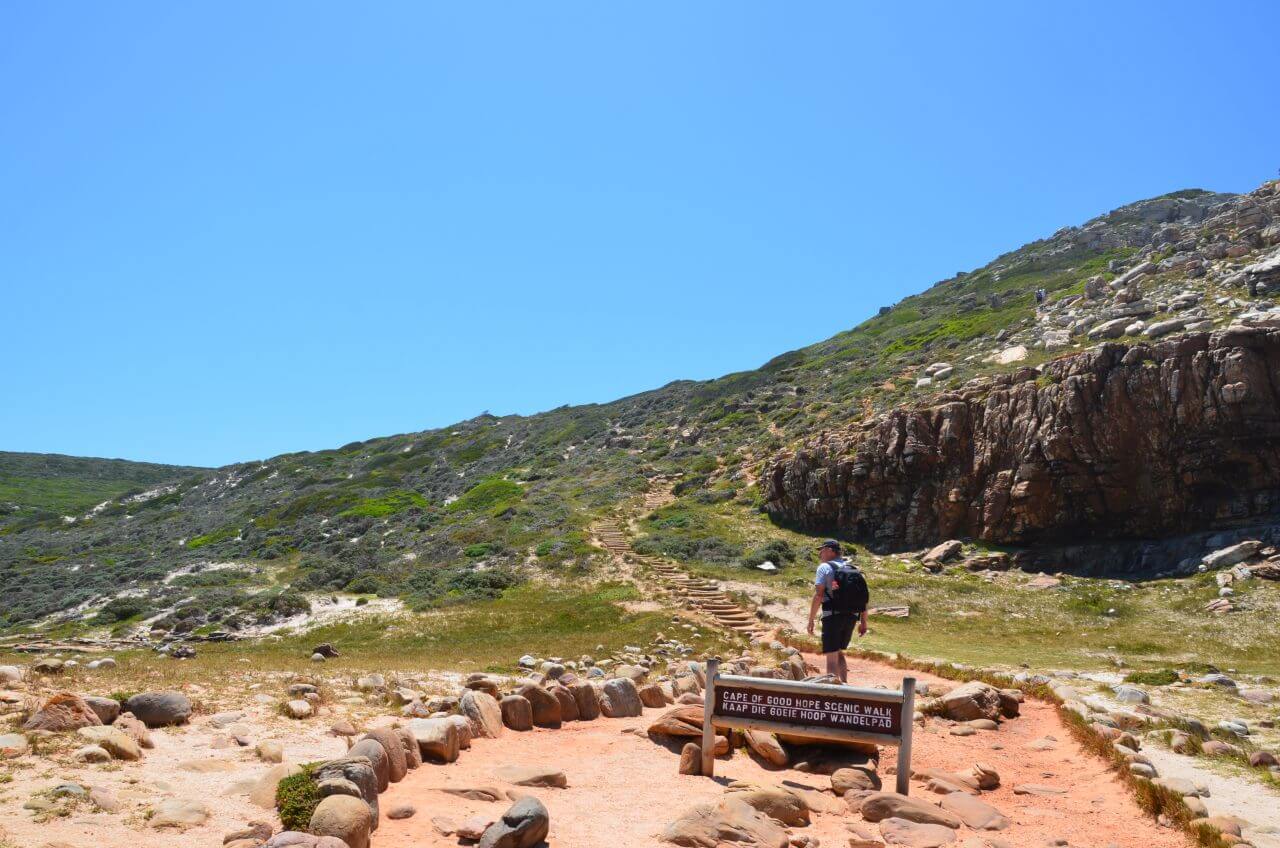 Anschließend machen wir uns nach oben zum Cape Point auf. Ein gutes Stück zu Fuß über Steine, sandige Wege, angelegte Treppen und Felsen geht es hoch. Tolle Aussicht gibt es gratis. Ganz bis zum Endpunkt gehen wir jedoch nicht, da wir den Rückweg zeitlich nicht mehr schaffen würden.