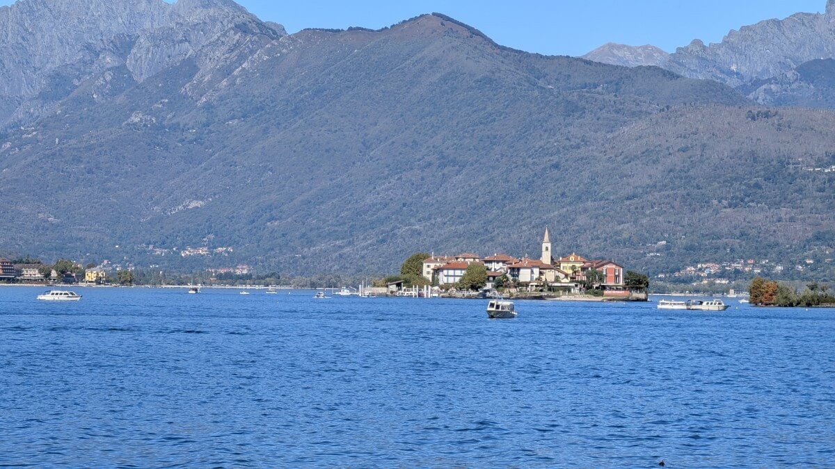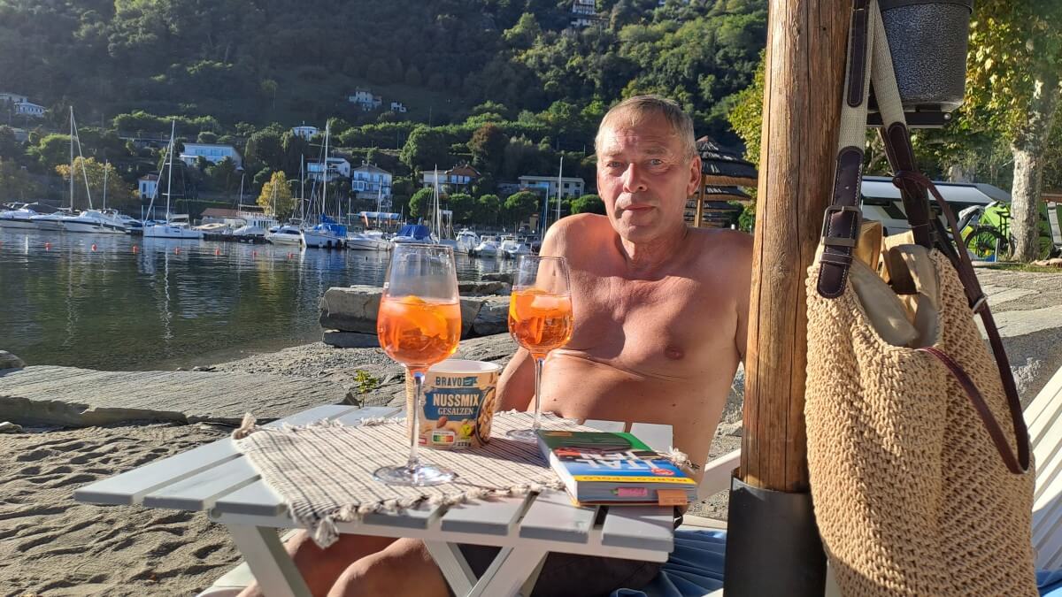 Wir gönnen uns einen weiteren Aufenthalt am Lago Maggiore und übernachten auf dem Campingplatz „Solcio“ (mit Accsi ebenfalls für 25€) kurz vor Arona. Faulenzen, Sonnenbaden und Rad fahren in die sehenswerten Orte Stresa und Arona stehen für uns die nächsten vier Tage auf dem Programm. Von hier aus blicken wir direkt auf die berühmten borromäischen Inseln „Isola Bella“, „Isola Pescatori“ und „Isola Madre“, die hier malerisch im Lago Maggiore liegen. Auf einen Besuch verzichten wir allerdings schon wegen der ungerechtfertigt hohen Eintrittskosten und der trotz Nebensaison großen Menschenmassen. Uns gefällt es auch am Festland ausnehmend gut.
