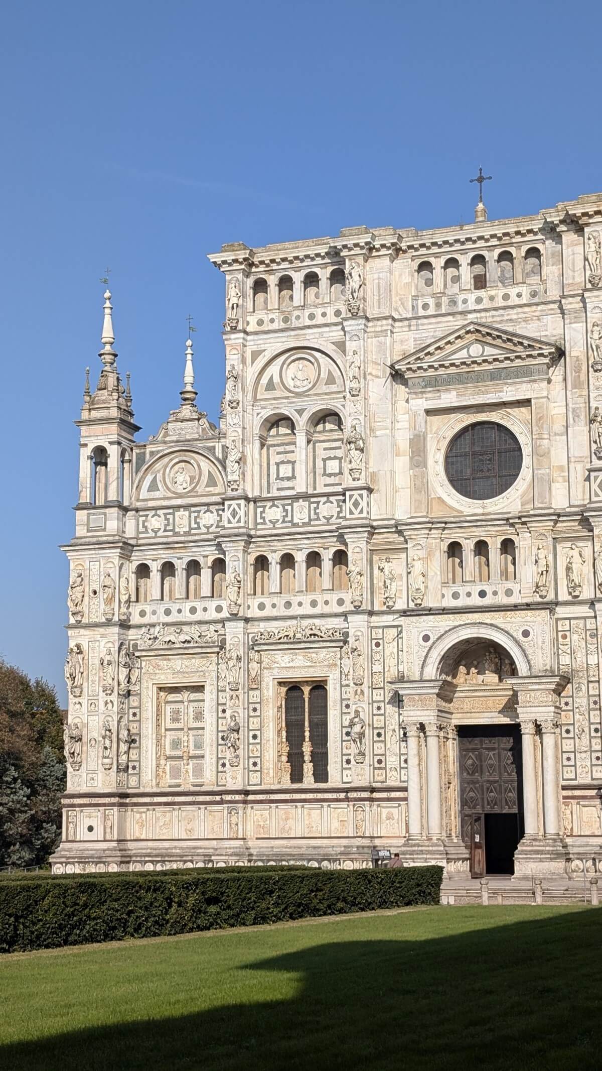 Die ersten Tage im sonnigen Italien waren schon wunderschön und erholsam. Doch nun fahren wir weiter nach Certosa di Pavia. Hier gibt es einen ordentlichen Wohnmobilstellpatz ganz in der Nähe der historischen Klosteranlage mit sehr beeindruckender Kirche aus dem 14. Jahrhundert. Certosa bedeutet soviel wie Kartause, also ein Kloster des Kartäuserordens mit großem Vorhof, Kreuzgang und alten Mönchszellen.