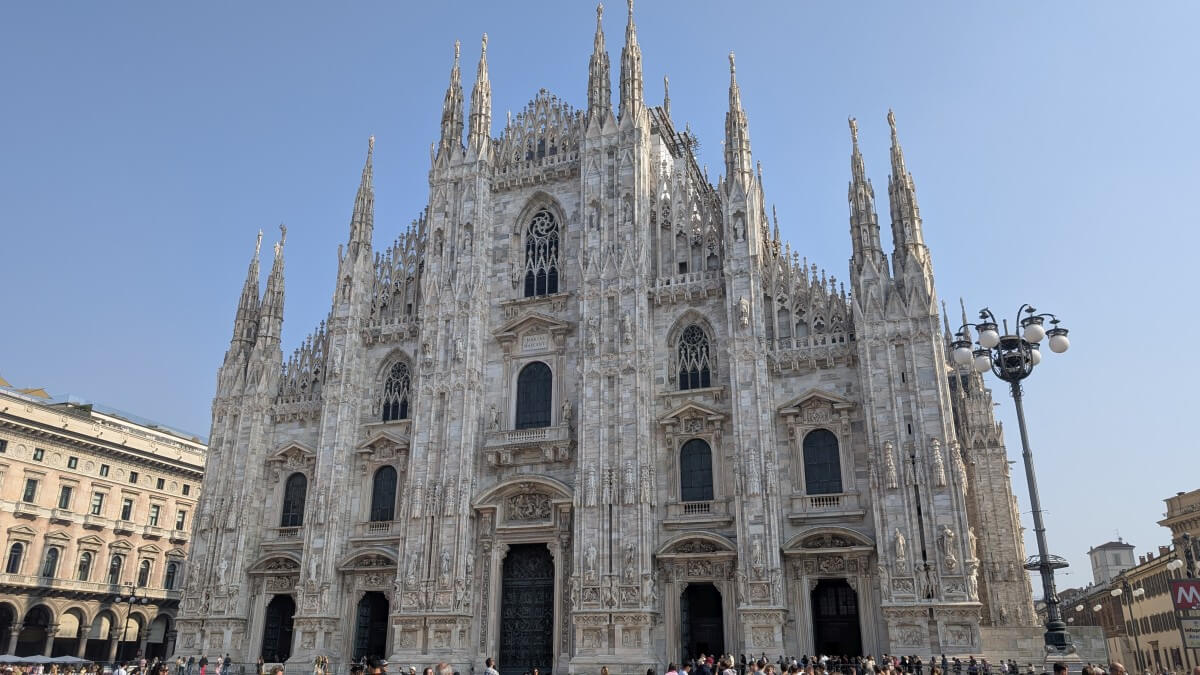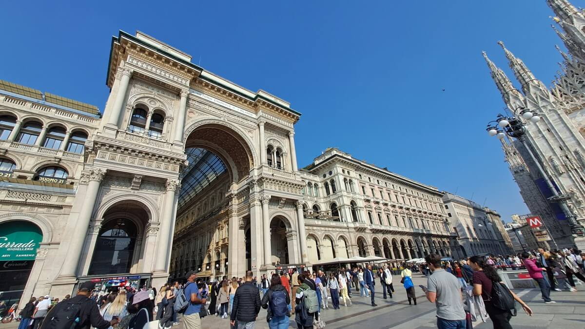 In Certosa di Pavia gibt es einen Bahnhof, von dem aus wir direkt mit „Trenitalia“ in 30 Minuten bis Mailand zur Station „Porta di Venezia“ fahren können. Zum ersten Mal sind wir nun in Mailand…..was wollen wir nicht alles sehen. Auf jeden Fall die berühmte Mailländer Scala, den Dom und die Galleria Vittorio Emanuela, eine luxoriöse Einkaufspassage. Und wir werden nicht enttäuscht. Lediglich das „Teatro alla Scala“ hatte ich mir etwas pompöser vorgestellt. Leider können wir das Opernhaus heute nicht von innen besichtigen. Begnügen wir uns also mit der Außenansicht und lassen uns durch die Straßen von Milano treiben.