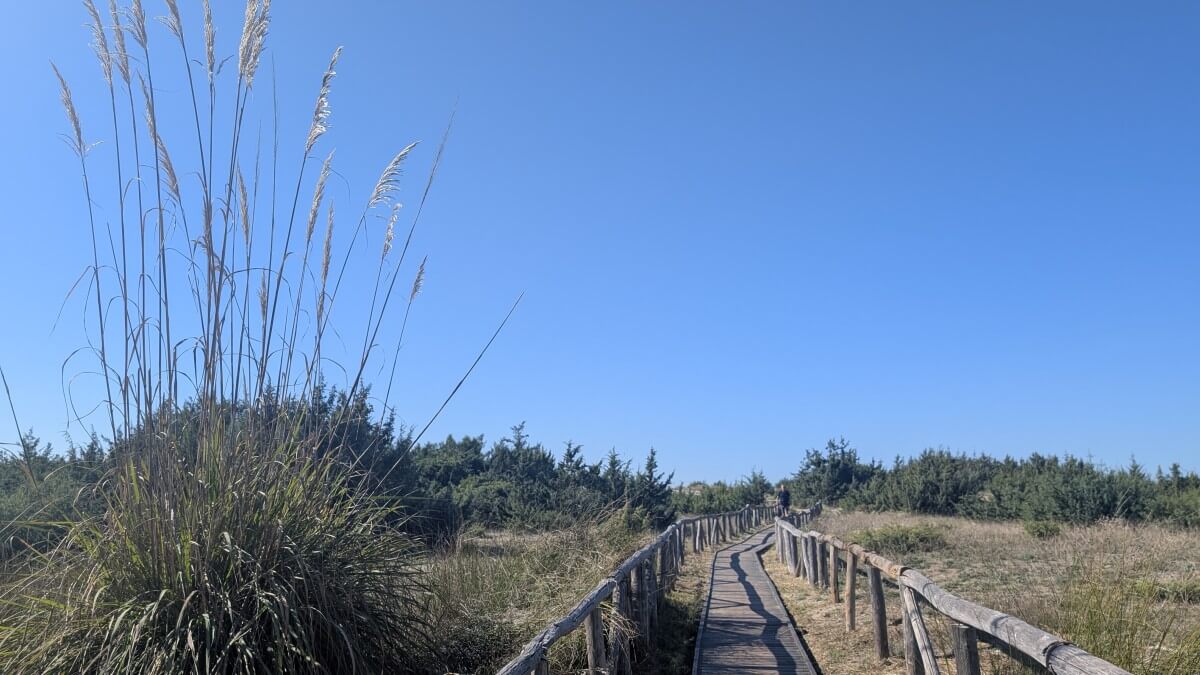 Danach fahren wir vorbei an Grosseto und erreichen die Halbinsel „Monte Argentario“. Über eine langen Damm der so sehr bewaldet ist, dass wir das Meer gar nicht zu Gesicht bekommen, fahren wir auf den Ort Porto Santo Stefano zu. Kurz vorher biegen wir ab zu einem Parkplatz, der auf einer kleinen Anhöhe nichts bietet als einen großen grünen Parkplatz und himlische Ruhe. Genau das richtige für uns. Den kleinen, aber feinen Ort Santo Stefano mit seinem wunderschönen Panorama erkunden wir später mit den Fahrrädern. Von Orbetello sehen wir beim Herunterfahren der Insel einige schöne Häuser die einen netten Ort vermuten lassen. In dieser Region werden wir uns bei einem nächsten Mal sicher länger aufhalten.