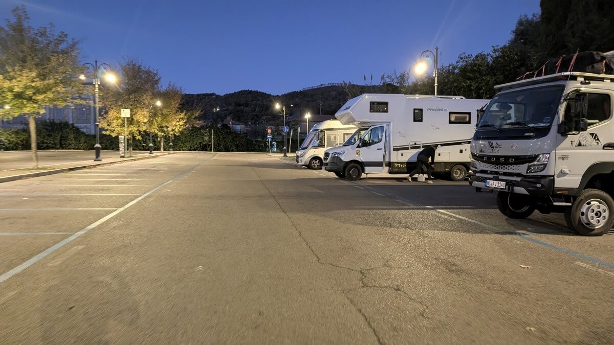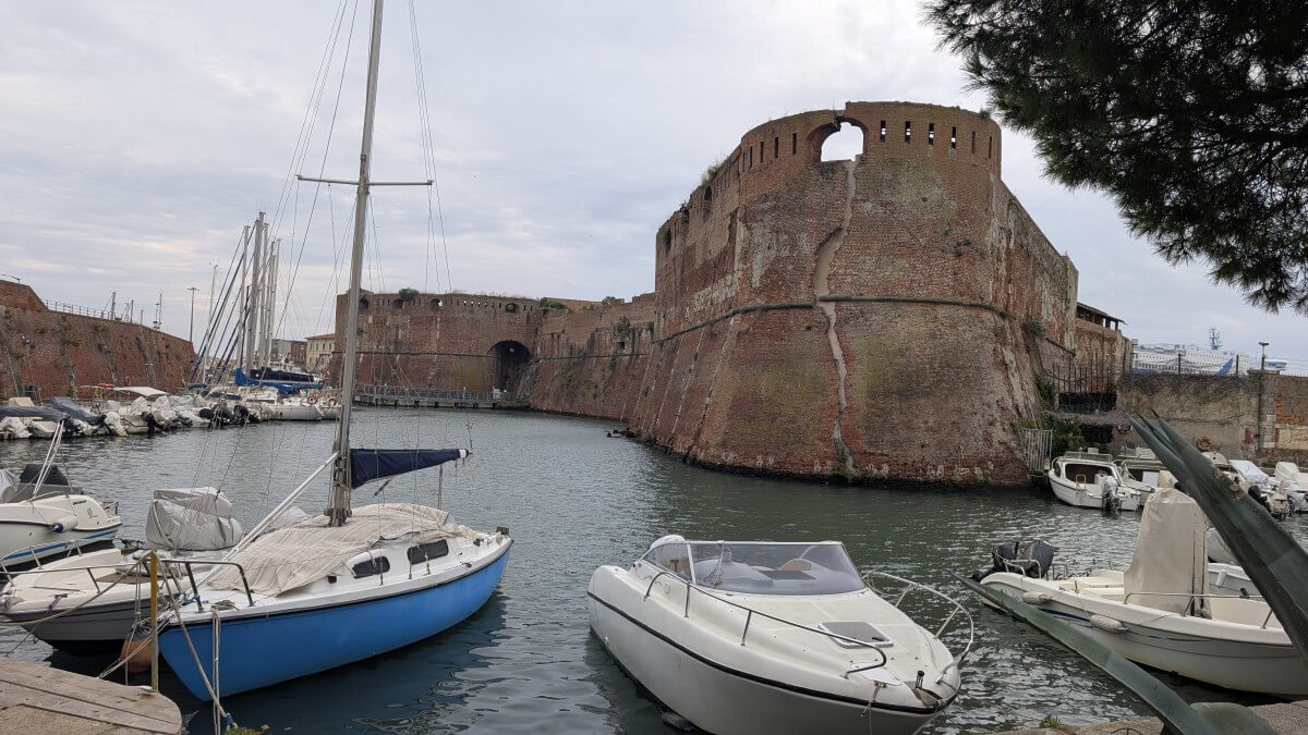 In Livorno der alten Hafenstadt finden wir am nächsten Tag einen wirklich großen Übernachtungsplatz. Nebenan gibt es einen nicht so schönen Wohnmobilparkplatz den wir aber gerne für die Ver- und Entsorgung nutzen.