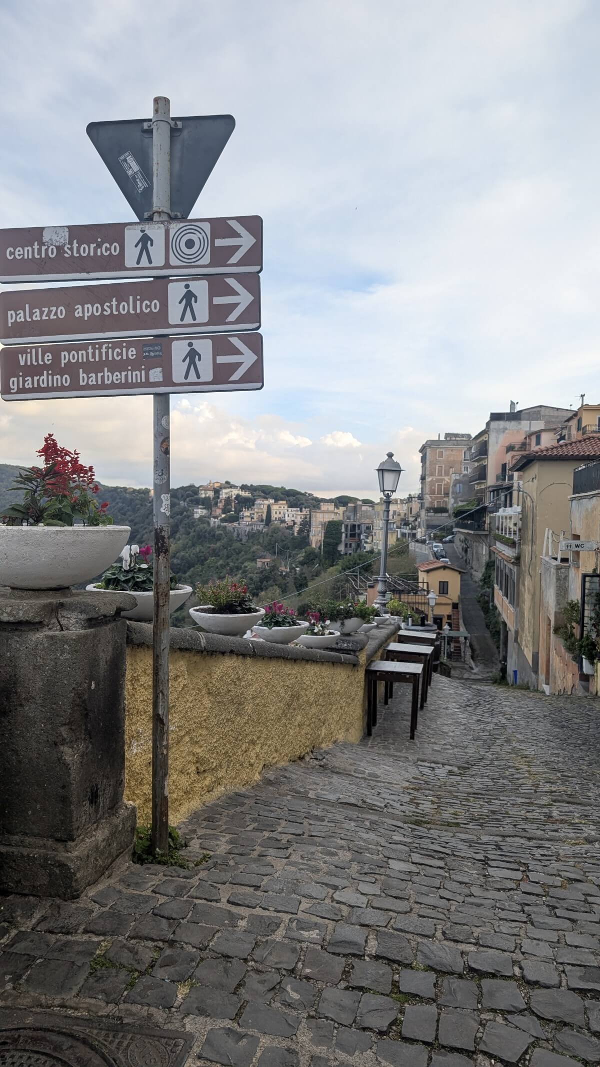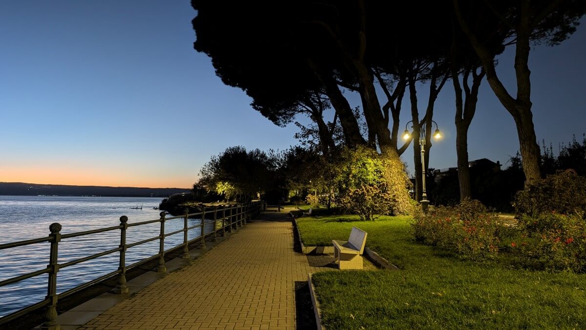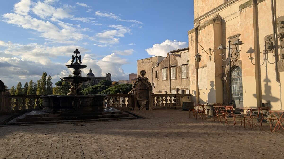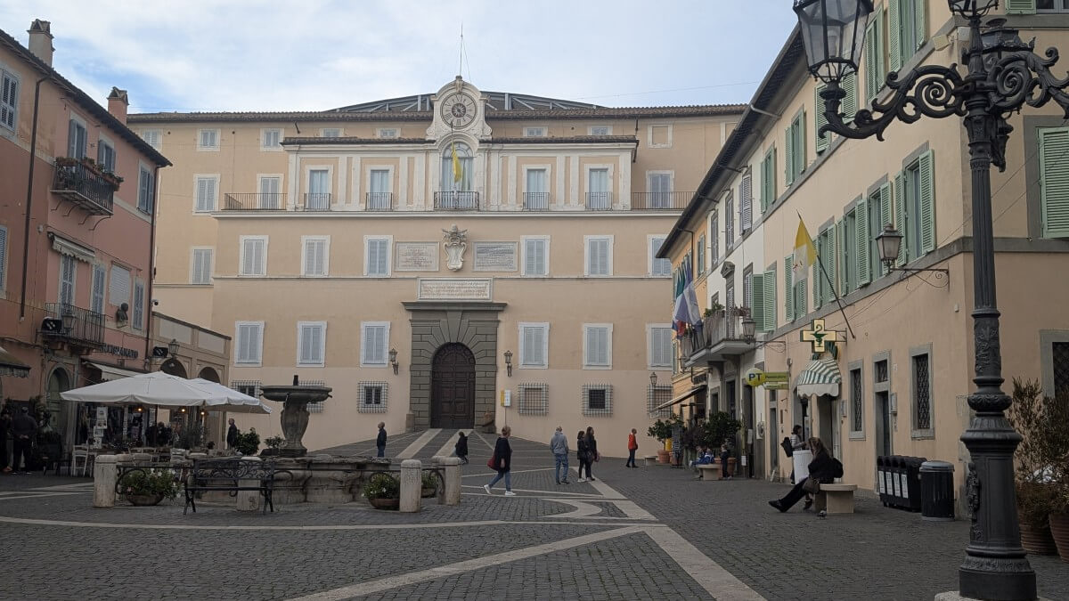 In Ciampino, einem Vorort von Rom, finden wir einen privaten Stellplatz im Garten einer römischen Familie. Wir liegen zwar in der Einflugschneise des Flughafens Ciampino, dafür stehen wir aber sicher und sind in gut 30 Minuten mit dem Zug in Rom am Hauptbahnhof Termini. Zuerst aber radeln wir mit den Fahrrädern zur Sommerresidenz des Papstes nach Castel Gandolfo. Es sind nur ca 7 km von unserem Standort. Die aber haben es in sich, denn Castel Gandolfo liegt schon in den Albaner Bergen mit direktem Blick auf den See.