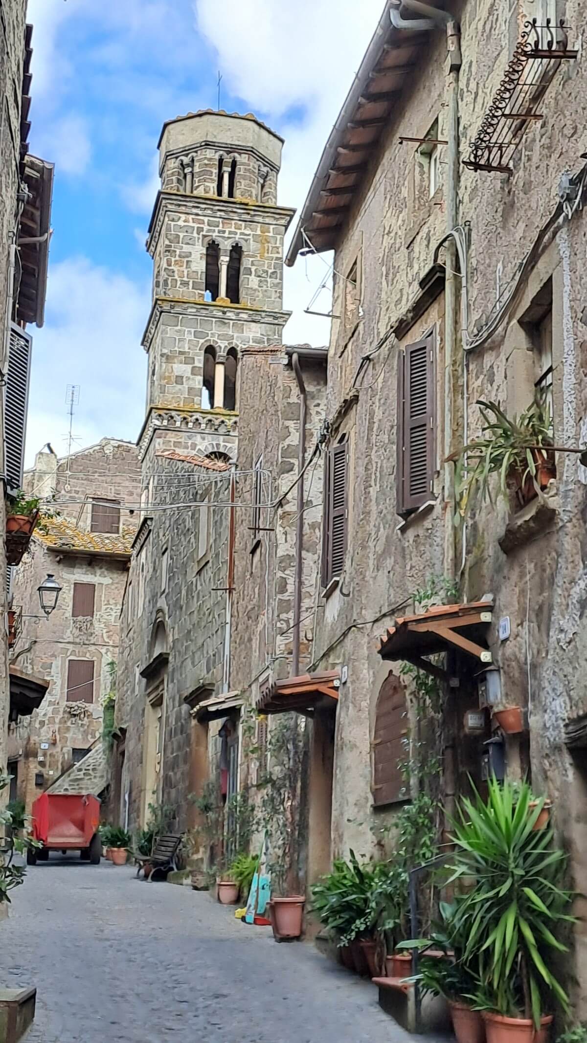 Ganz anders erleben wir Borgo di Celleno. Dieses oft als Geisterstadt bezeichnete historische Dorf dessen Wurzeln bis in die etruskische Zivilisation (die Zeit vor Christus) zurückreichen, wurde inzwischen von allen Einwohnern verlassen. Es gleicht einem Freilichtmuseum und zeigt beeindruckend inmitten der Ruinen die frühere Lebensweise der Menschen im Dorf.