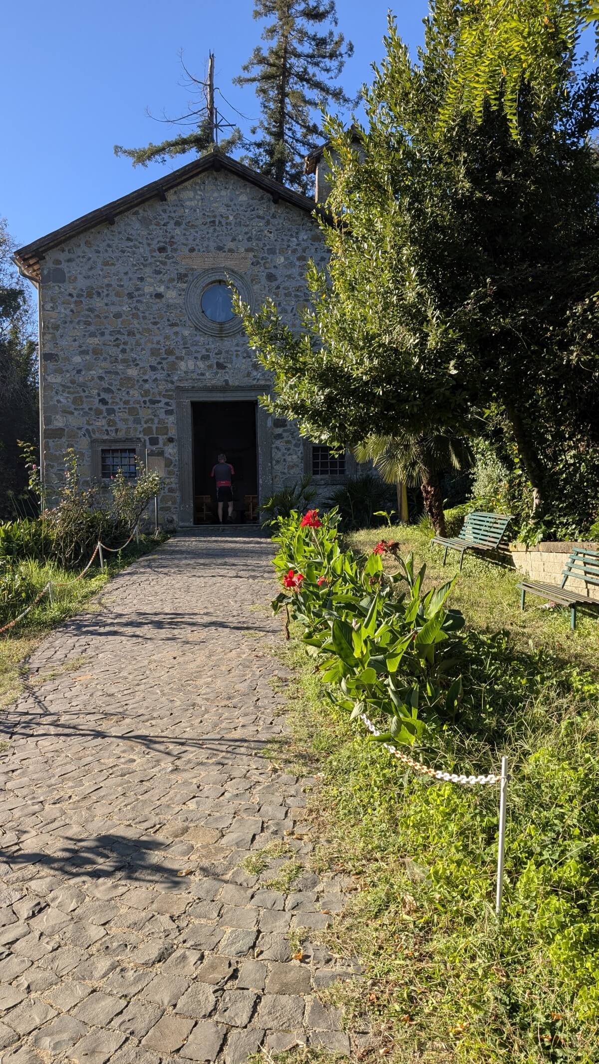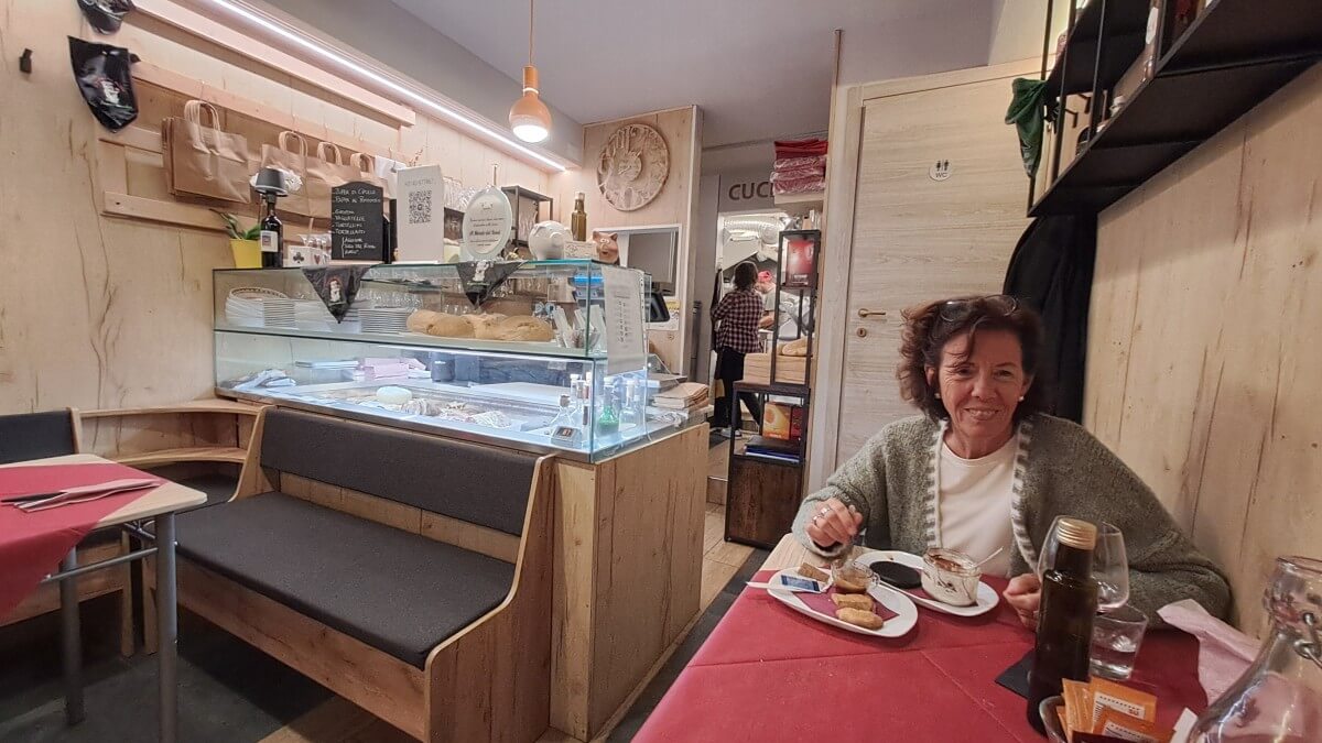 Immer wieder begenet uns der Pilgerweg „Francigena“ in den italienischen Orten. So auch in Sutri. Hier holen sich die Wanderer nach einem einfachen aber köstlichem Abendessen in der „Trattoria La Sfera“ ihren Stempel ab. Uns schmeckts auch ohne großartige Wanderung, dort wo der Opa kocht, die Oma kassiert, der Sohn bedient und die Tochter serviert.